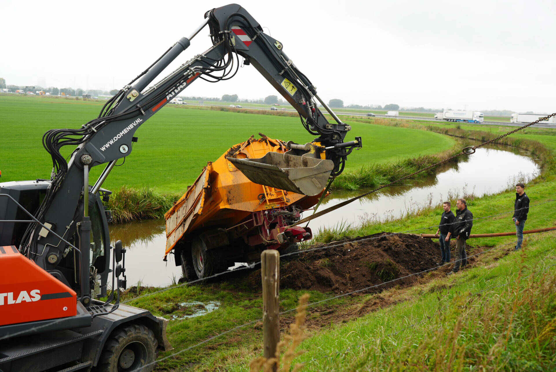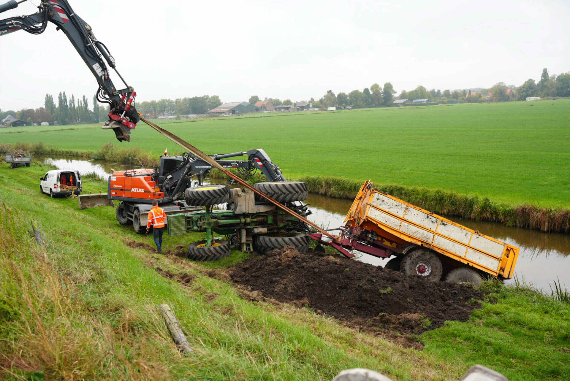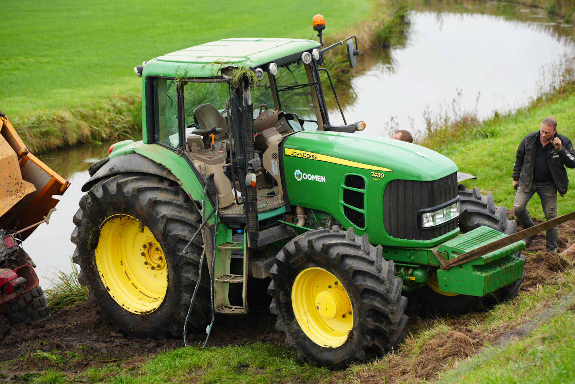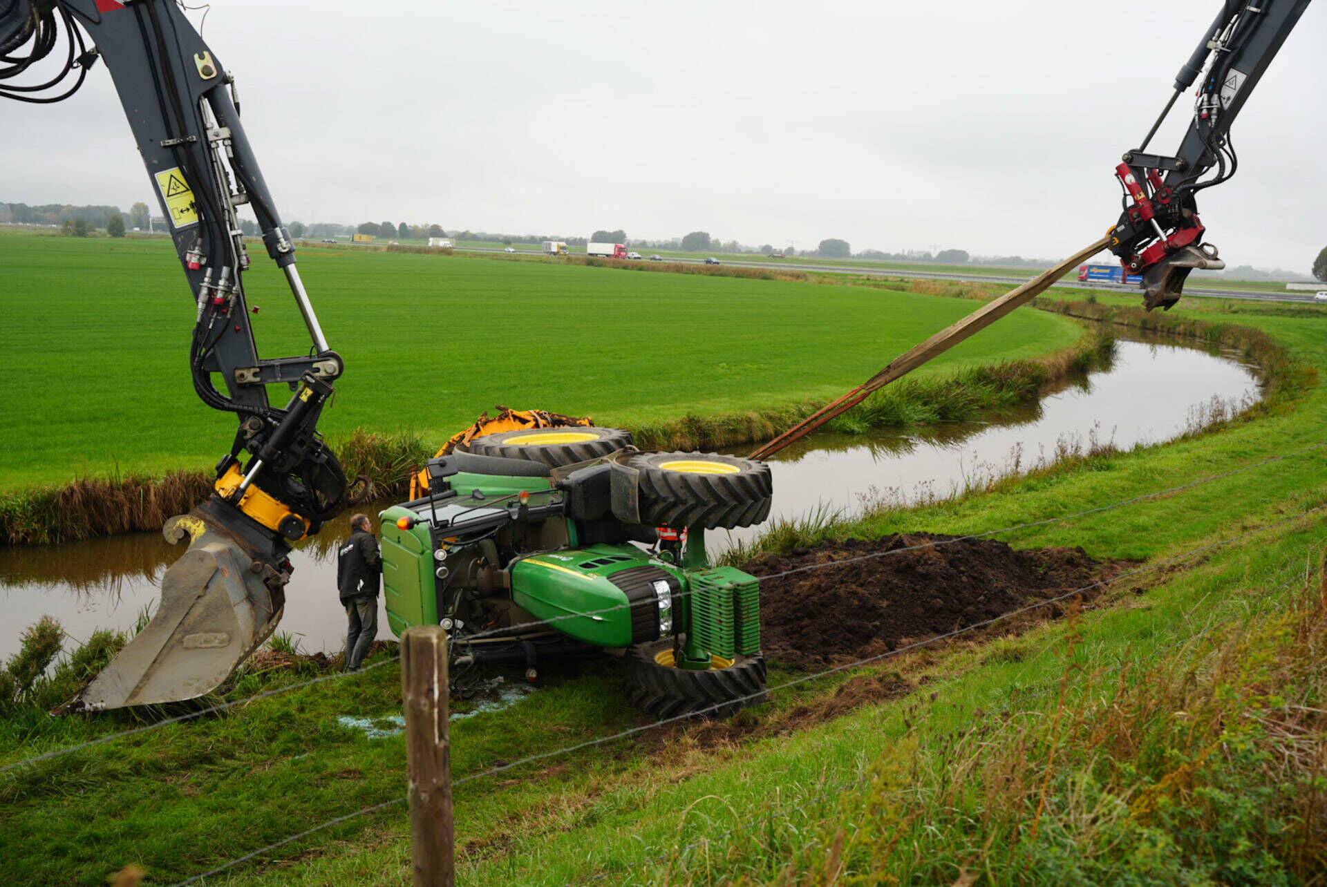 De tractor vervoerde een kiepkar toen het misging op de Zijlweg tussen Waspik en Raamsdonk. De tractor kwam op zijn kant te liggen, terwijl de aanhanger met tien kubieke meter grond in het water belandde. Een loonbedrijf heeft met kranen de combinatie overeind gezet en uit het zand getrokken.
