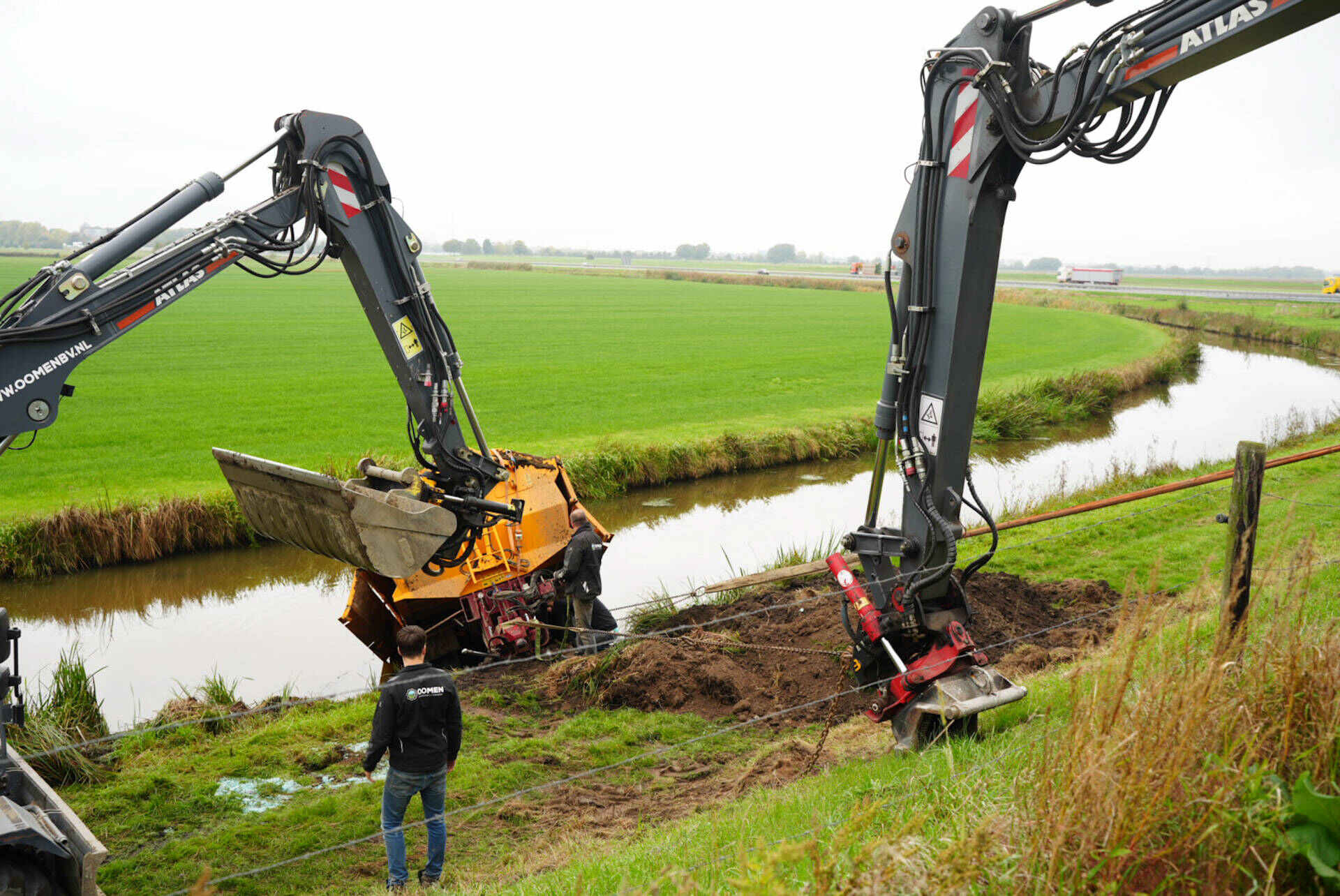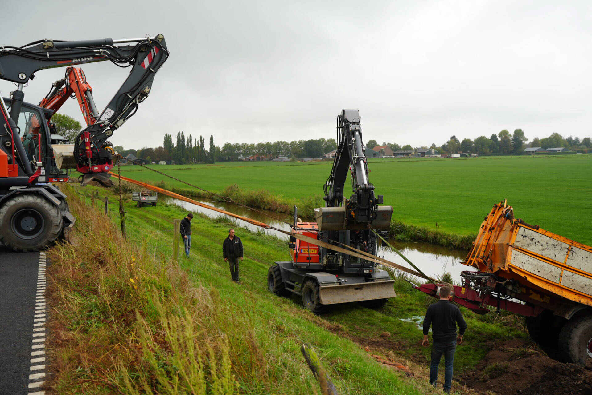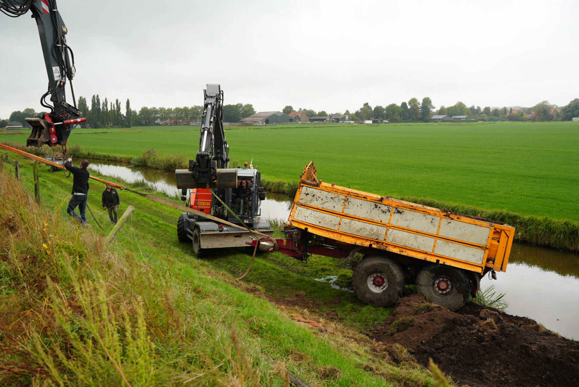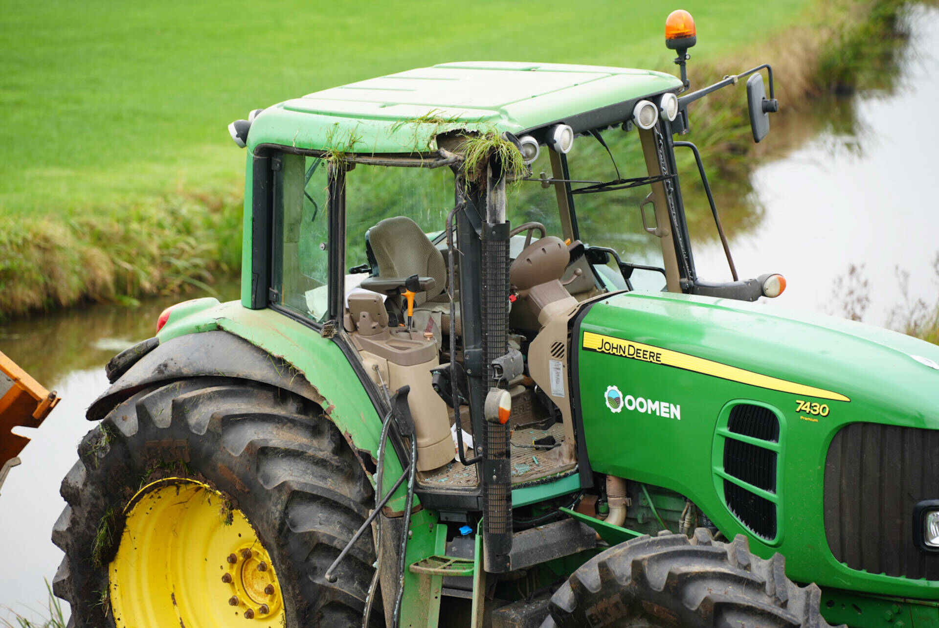 De tractor vervoerde een kiepkar toen het misging op de Zijlweg tussen Waspik en Raamsdonk. De tractor kwam op zijn kant te liggen, terwijl de aanhanger met tien kubieke meter grond in het water belandde. Een loonbedrijf heeft met kranen de combinatie overeind gezet en uit het zand getrokken.