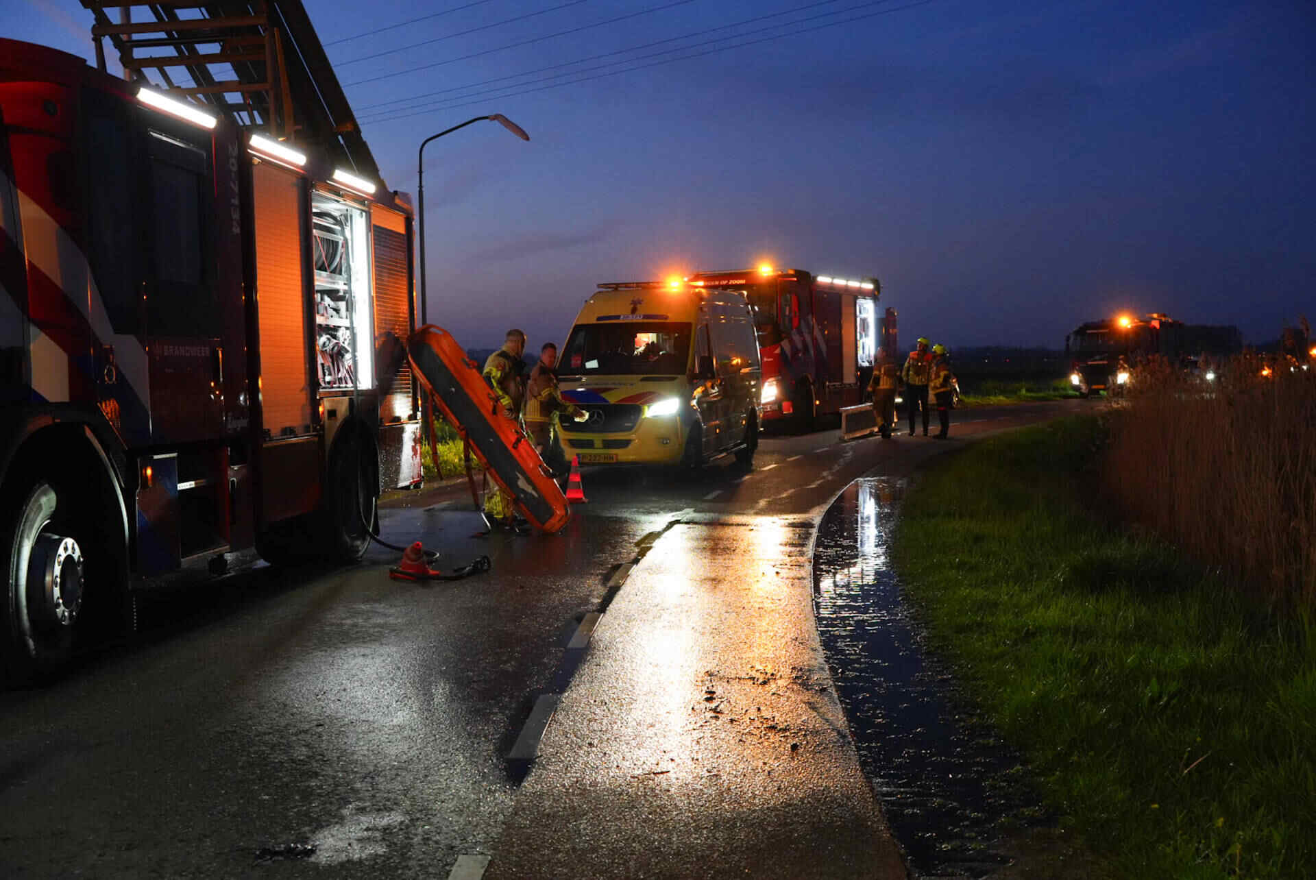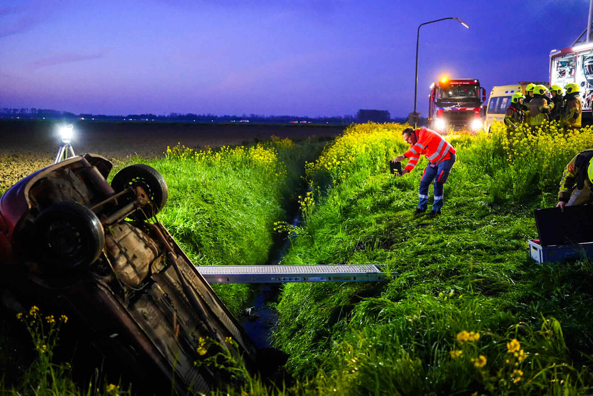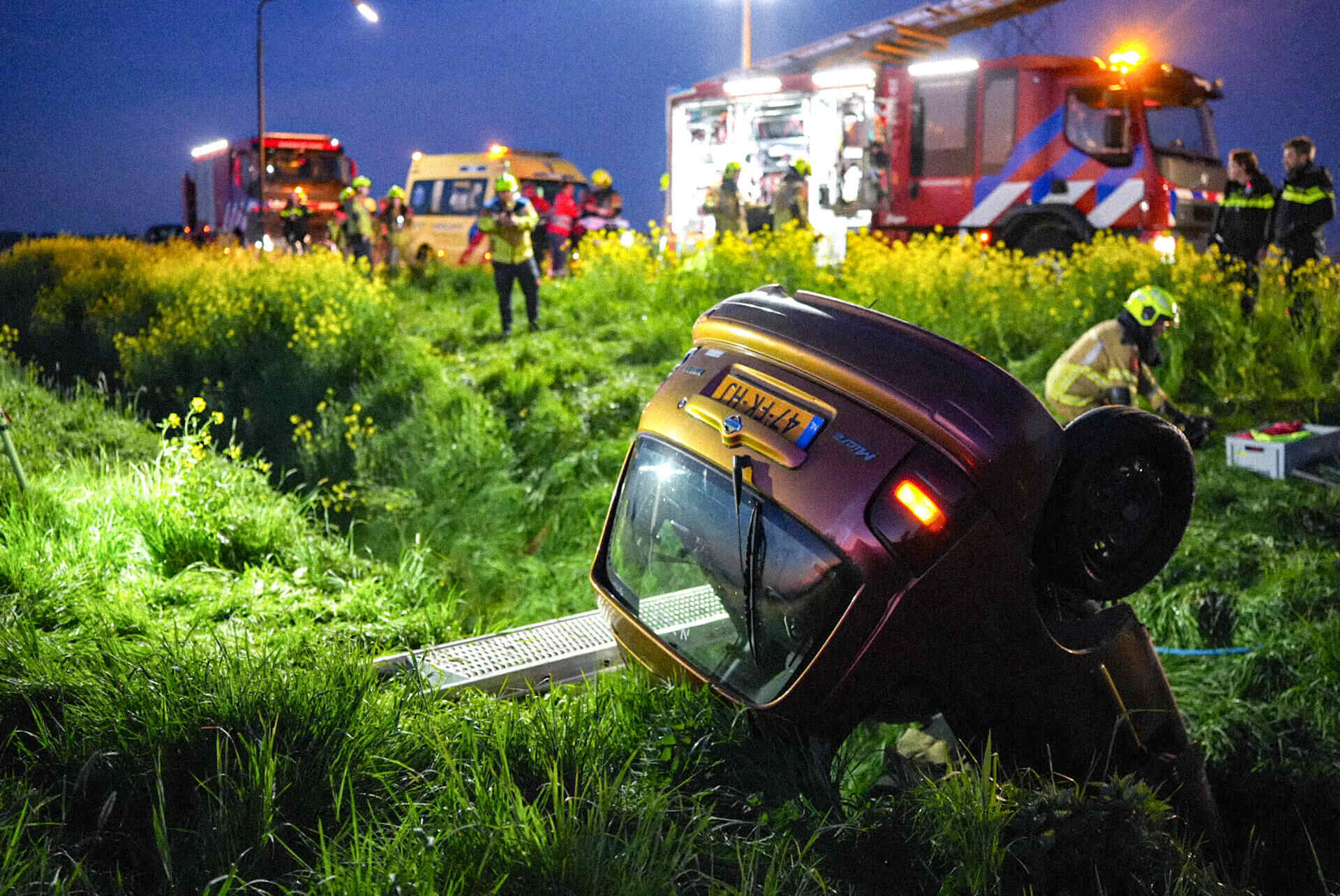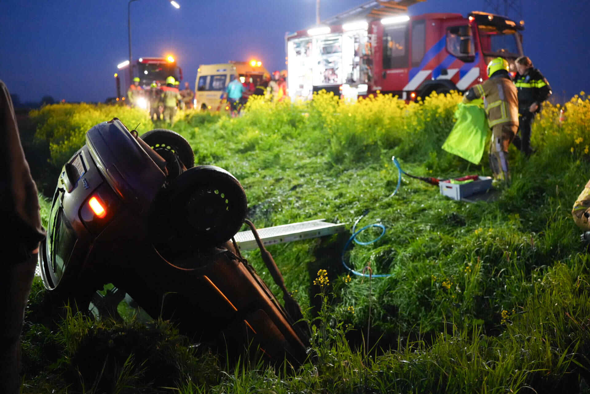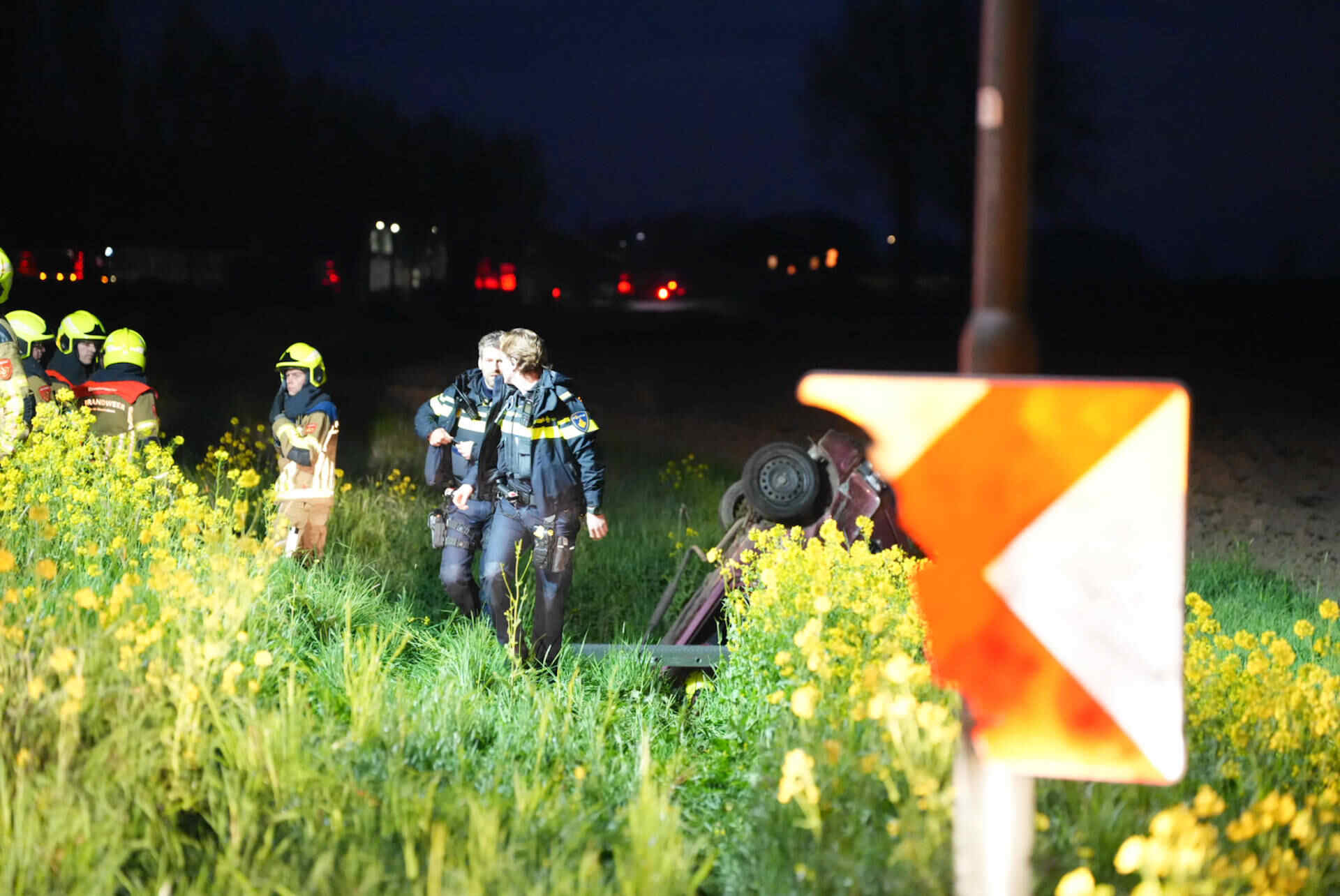 In de tussentijd bleef de weg dicht om hulpdiensten de ruimte te geven. Nadat de auto uit de droge sloot was getakeld, werd de Veerweg rond 07.00 uur vrijgegeven.