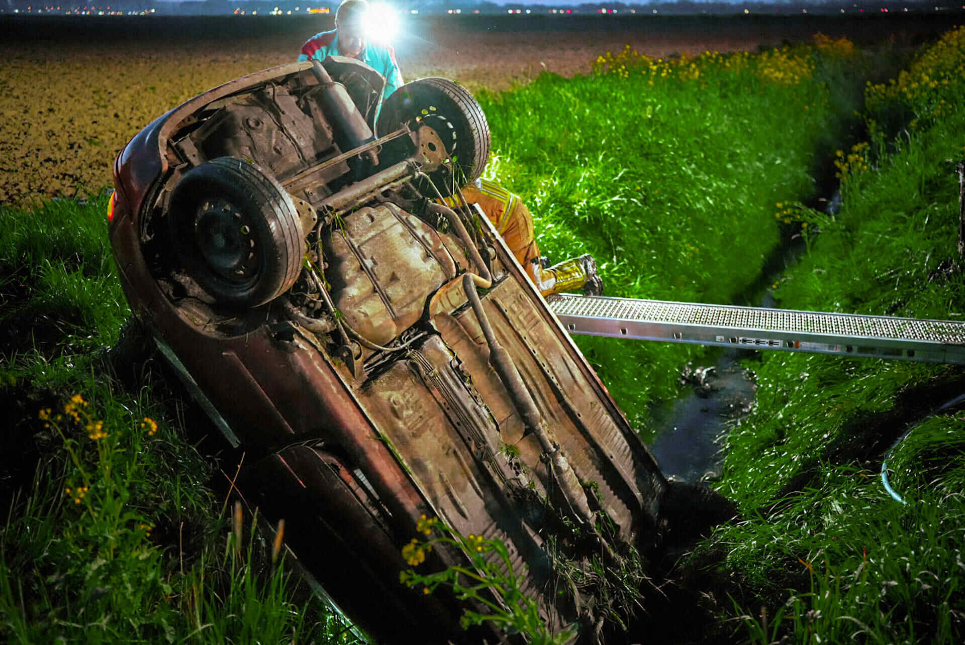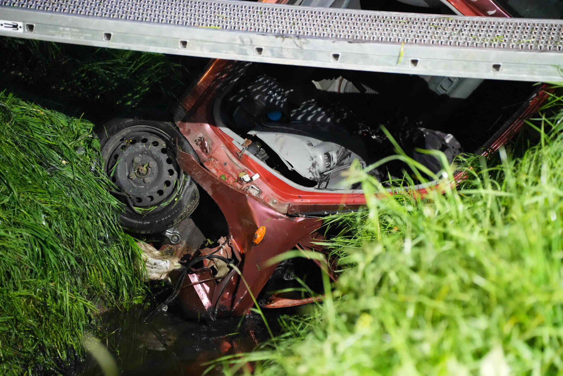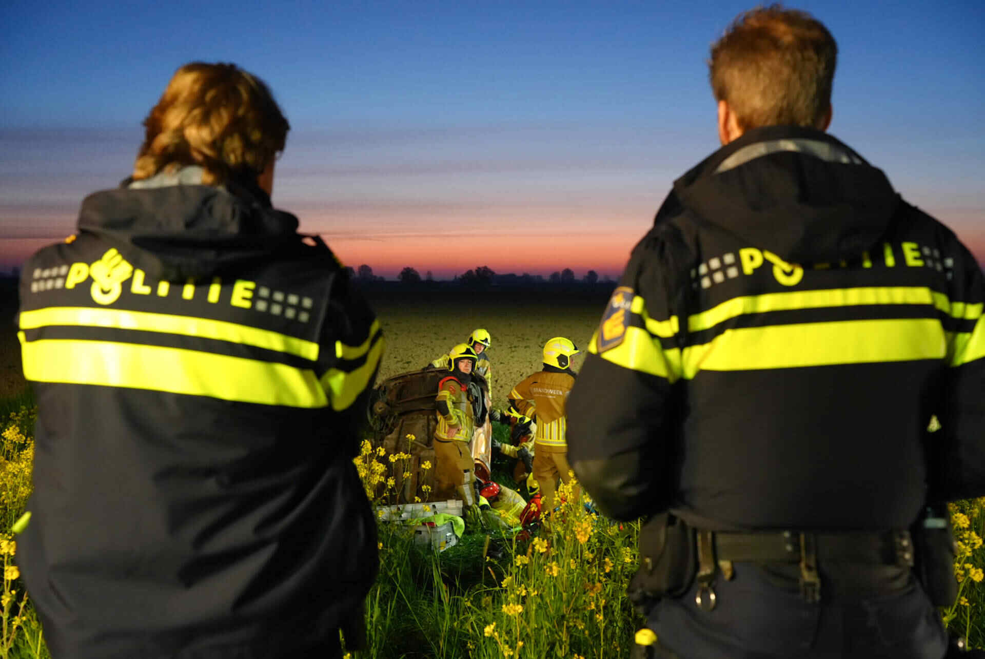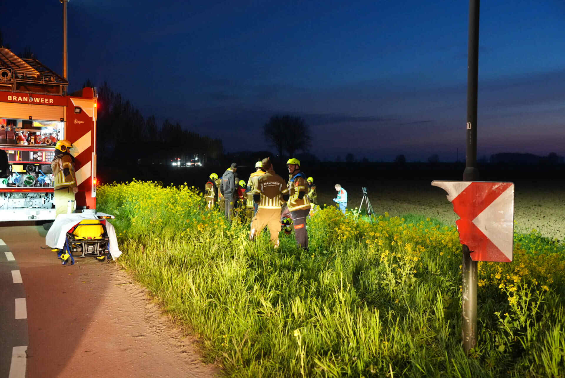 In de tussentijd bleef de weg dicht om hulpdiensten de ruimte te geven. Nadat de auto uit de droge sloot was getakeld, werd de Veerweg rond 07.00 uur vrijgegeven.