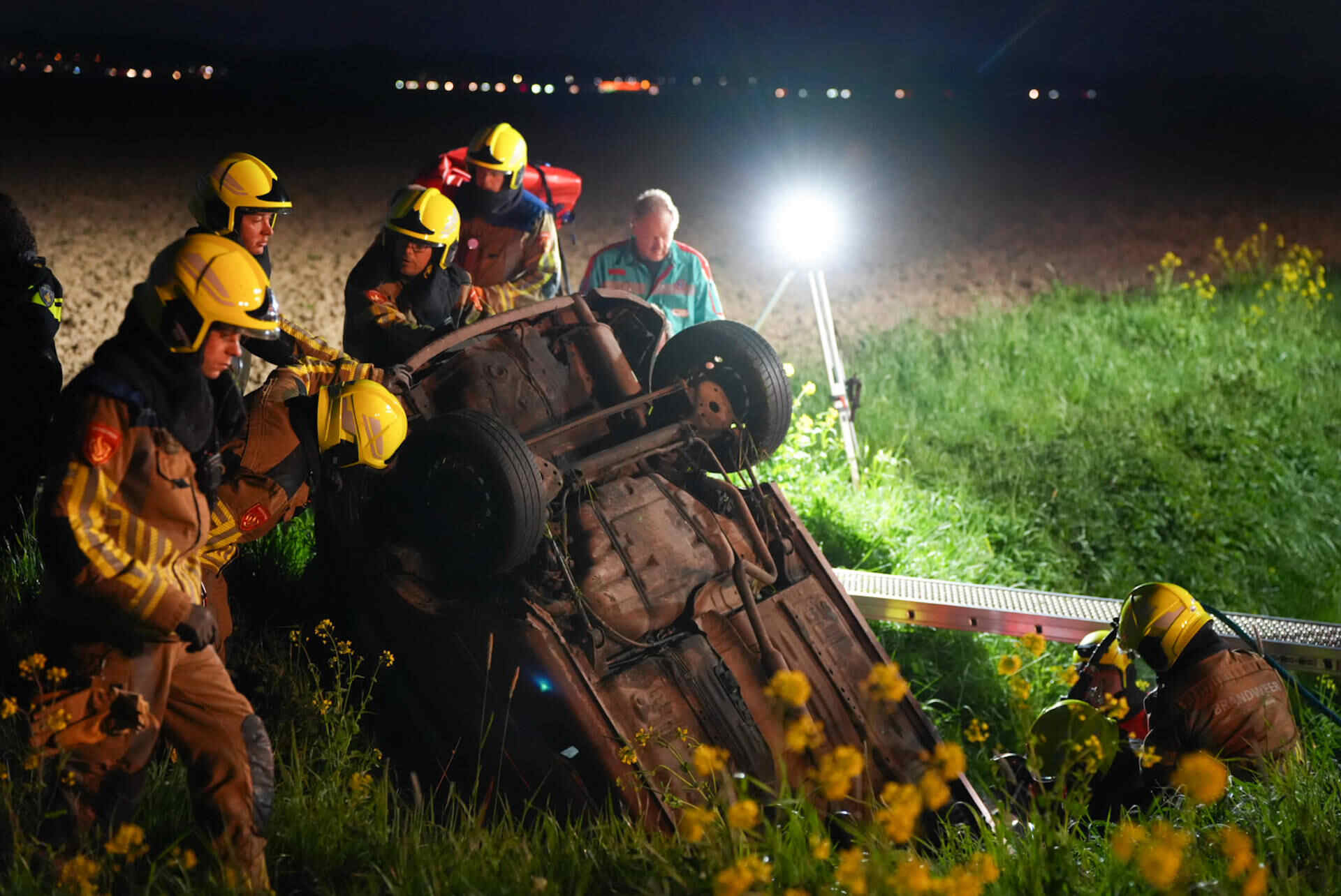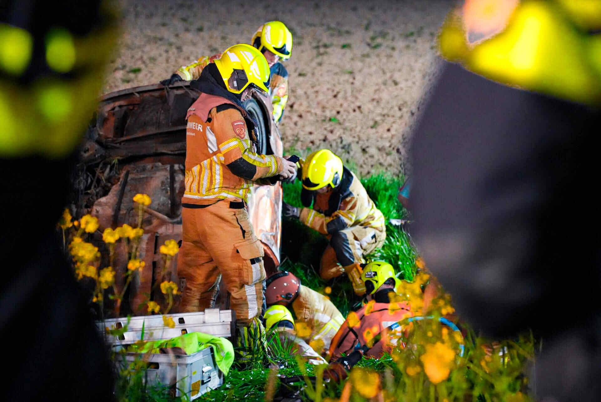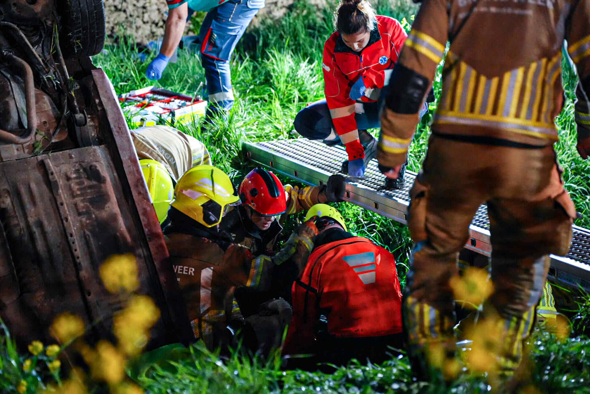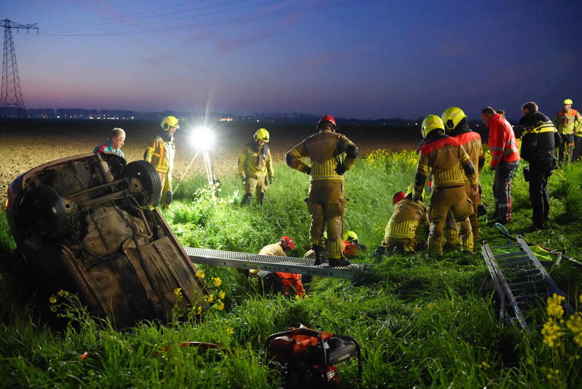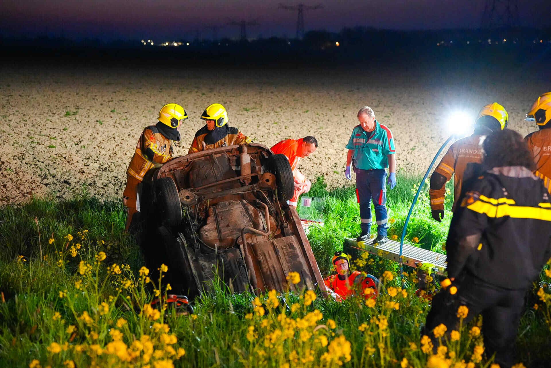 In de tussentijd bleef de weg dicht om hulpdiensten de ruimte te geven. Nadat de auto uit de droge sloot was getakeld, werd de Veerweg rond 07.00 uur vrijgegeven.