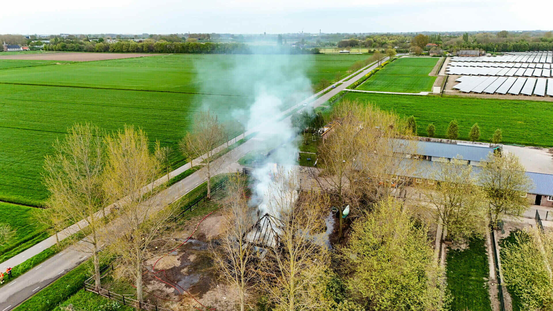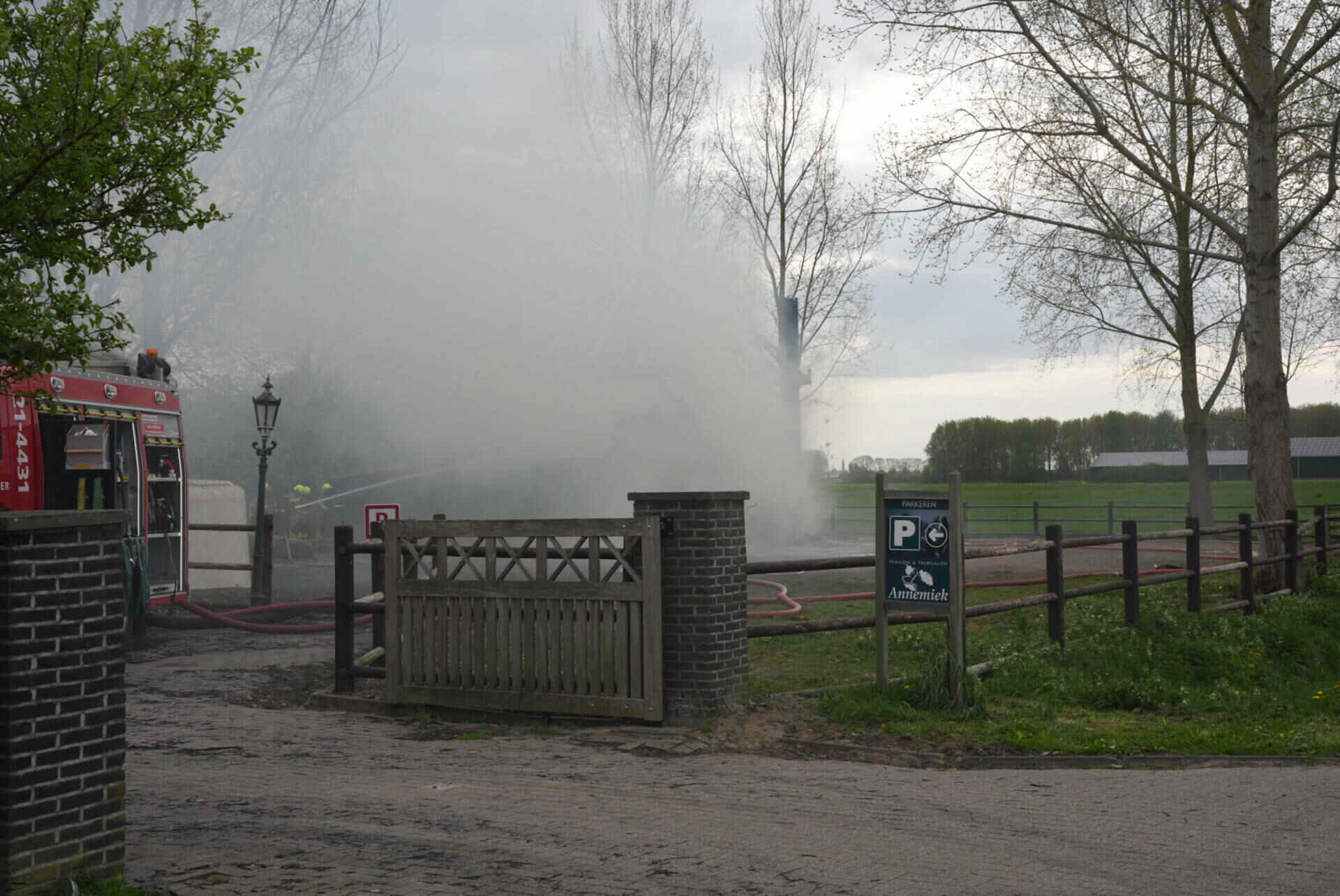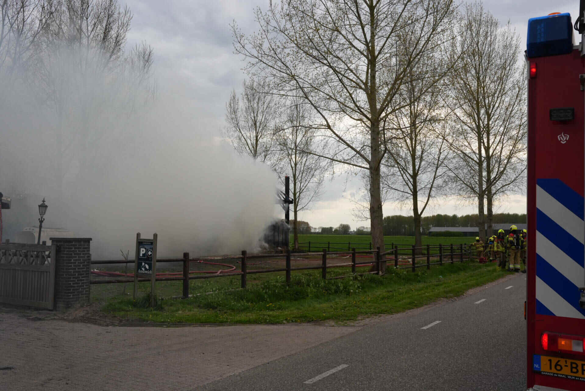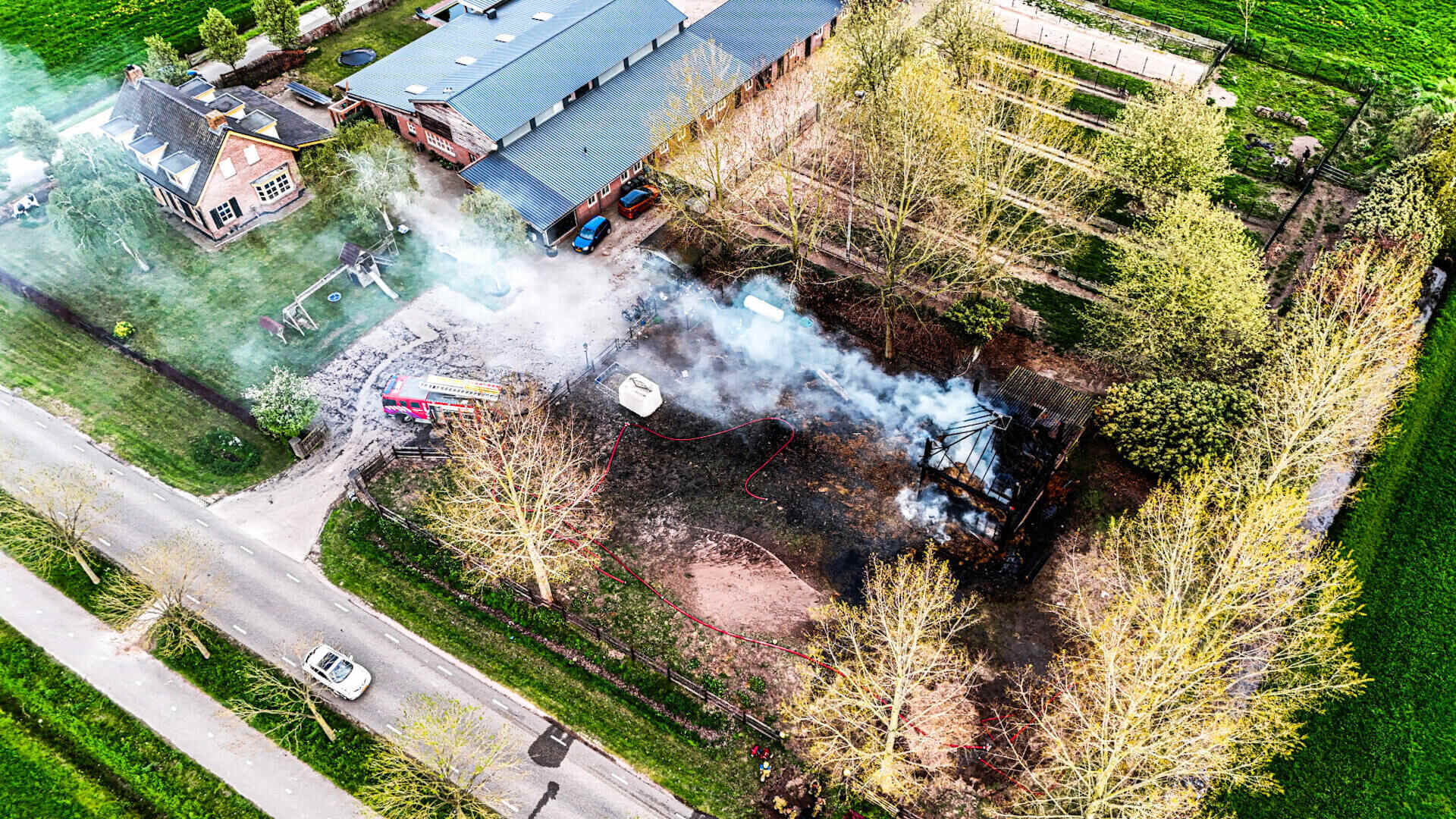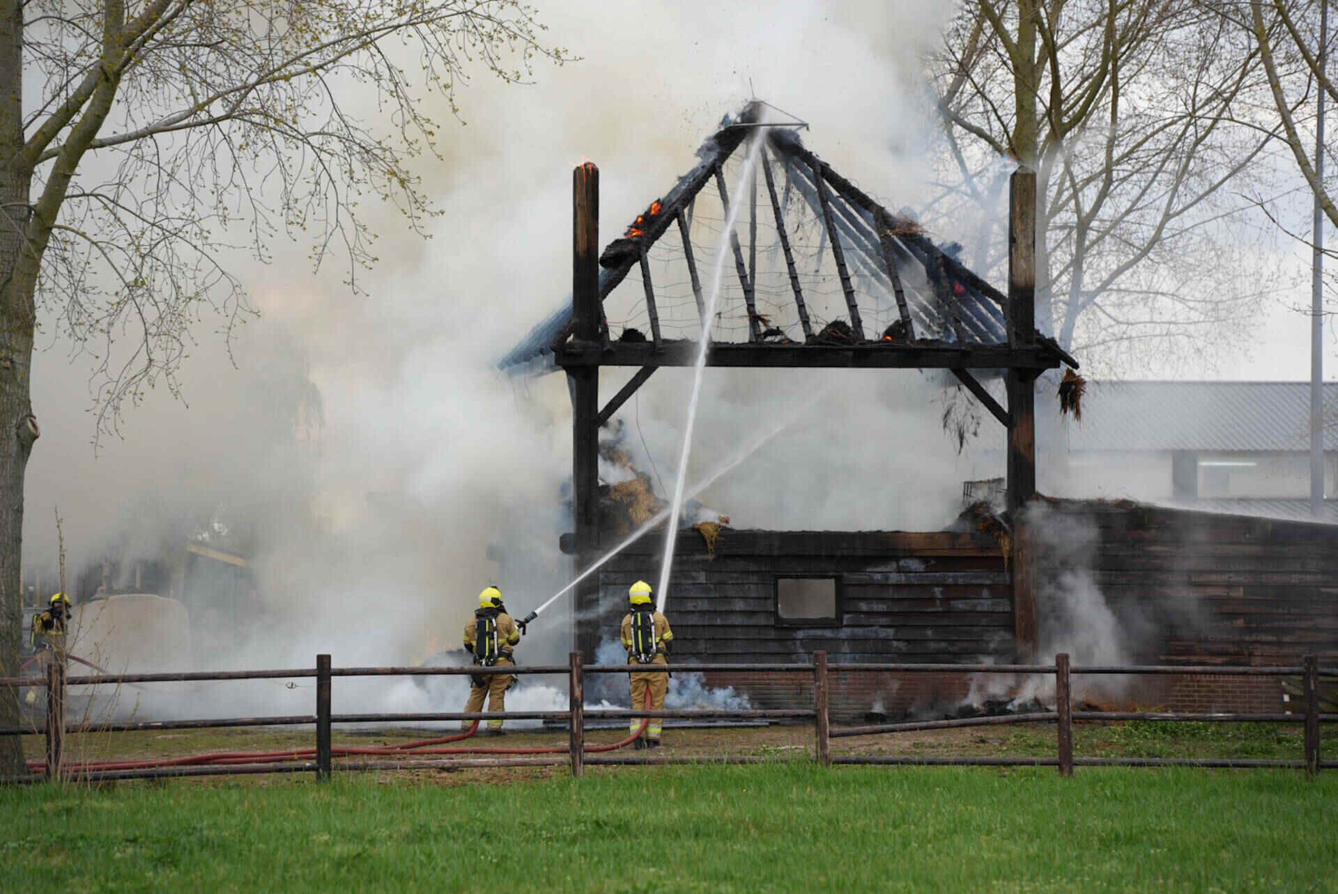 De brandweer had het vuur snel onder controle, maar kon niet voorkomen dat de hooischuur afbrandde. Er kwam veel rook van de smeulende hooiberg af, wat leidde tot de oproep dat omwonenden hun ramen en deuren moesten sluiten.
