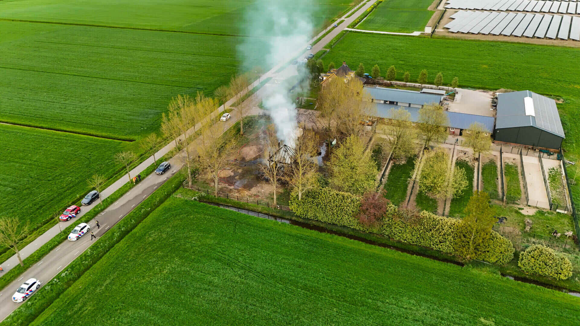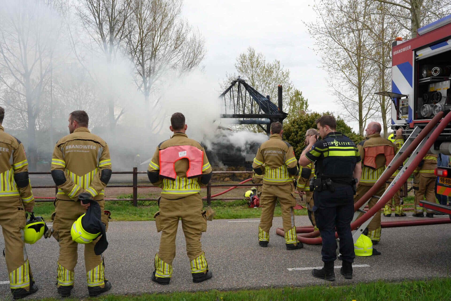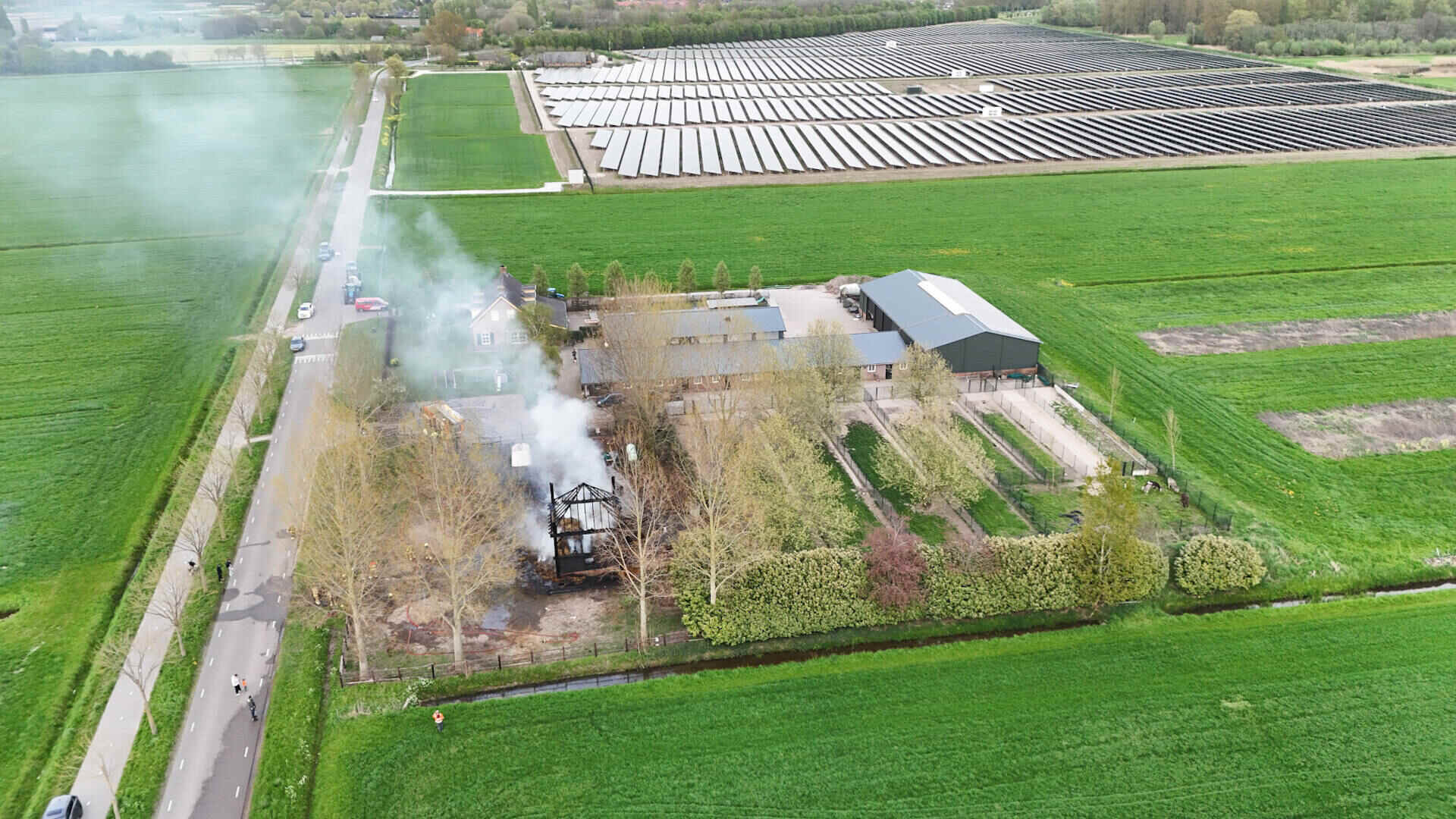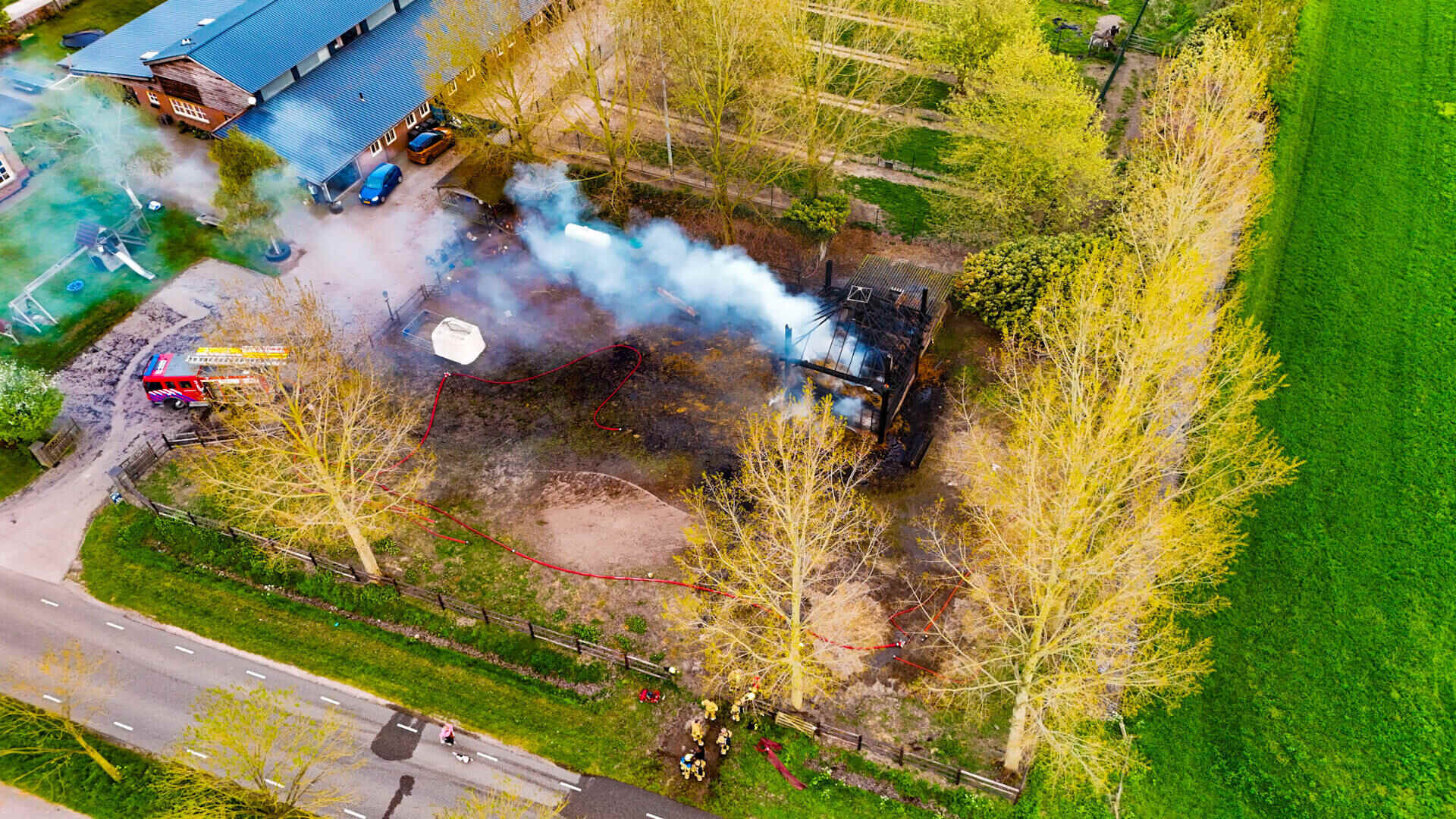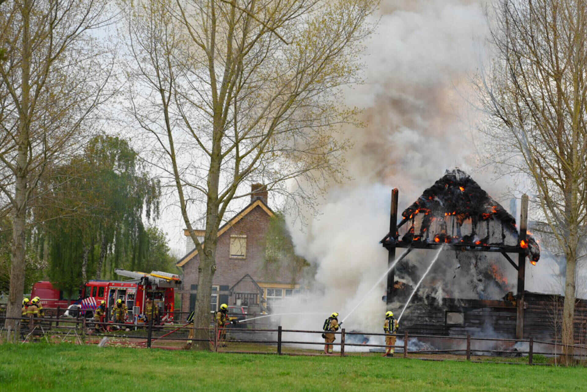 De brandweer had het vuur snel onder controle, maar kon niet voorkomen dat de hooischuur afbrandde. Er kwam veel rook van de smeulende hooiberg af, wat leidde tot de oproep dat omwonenden hun ramen en deuren moesten sluiten.