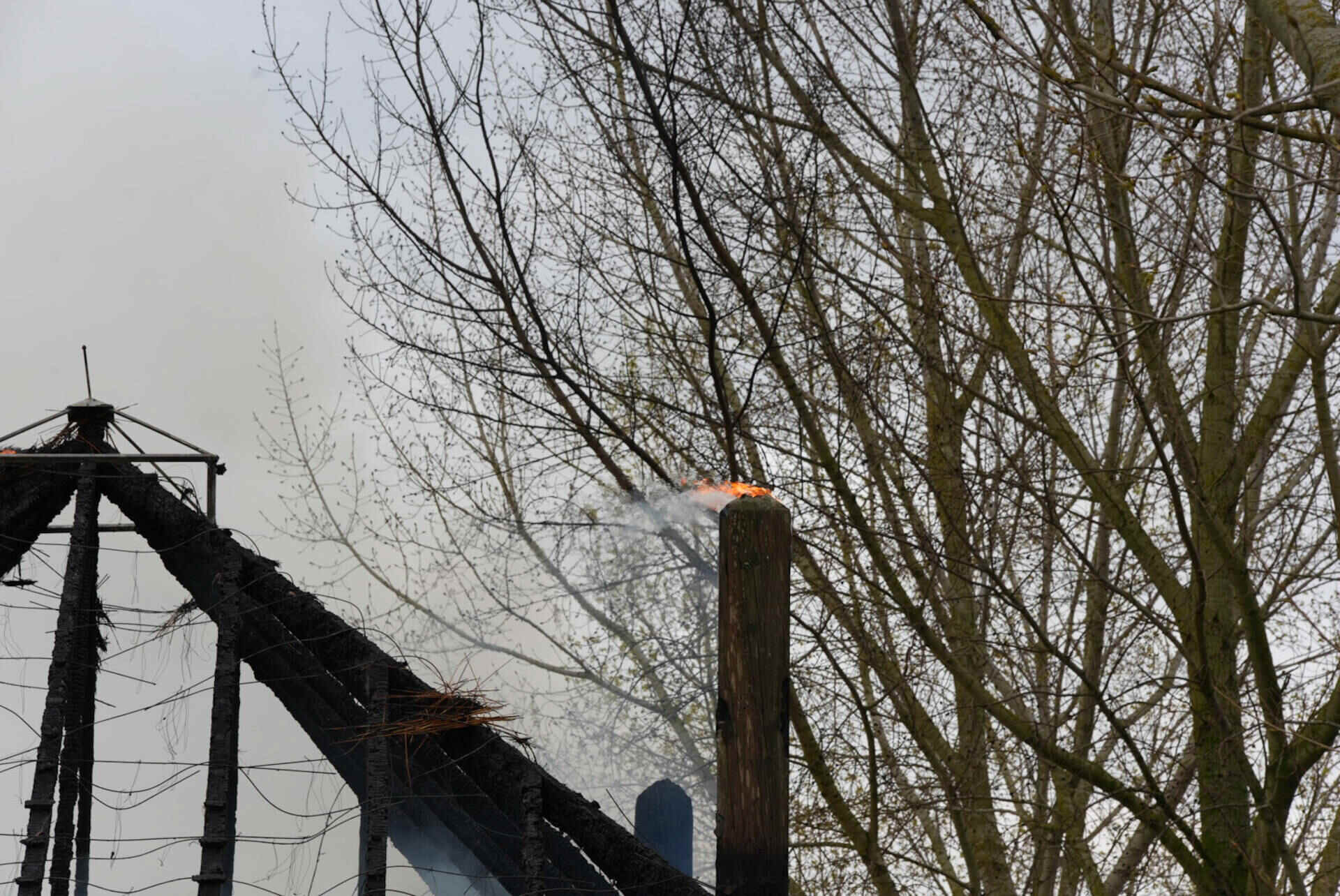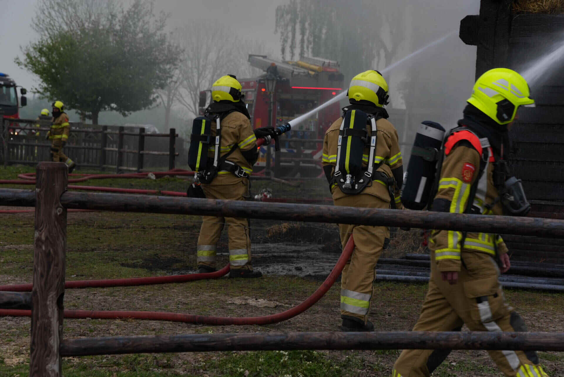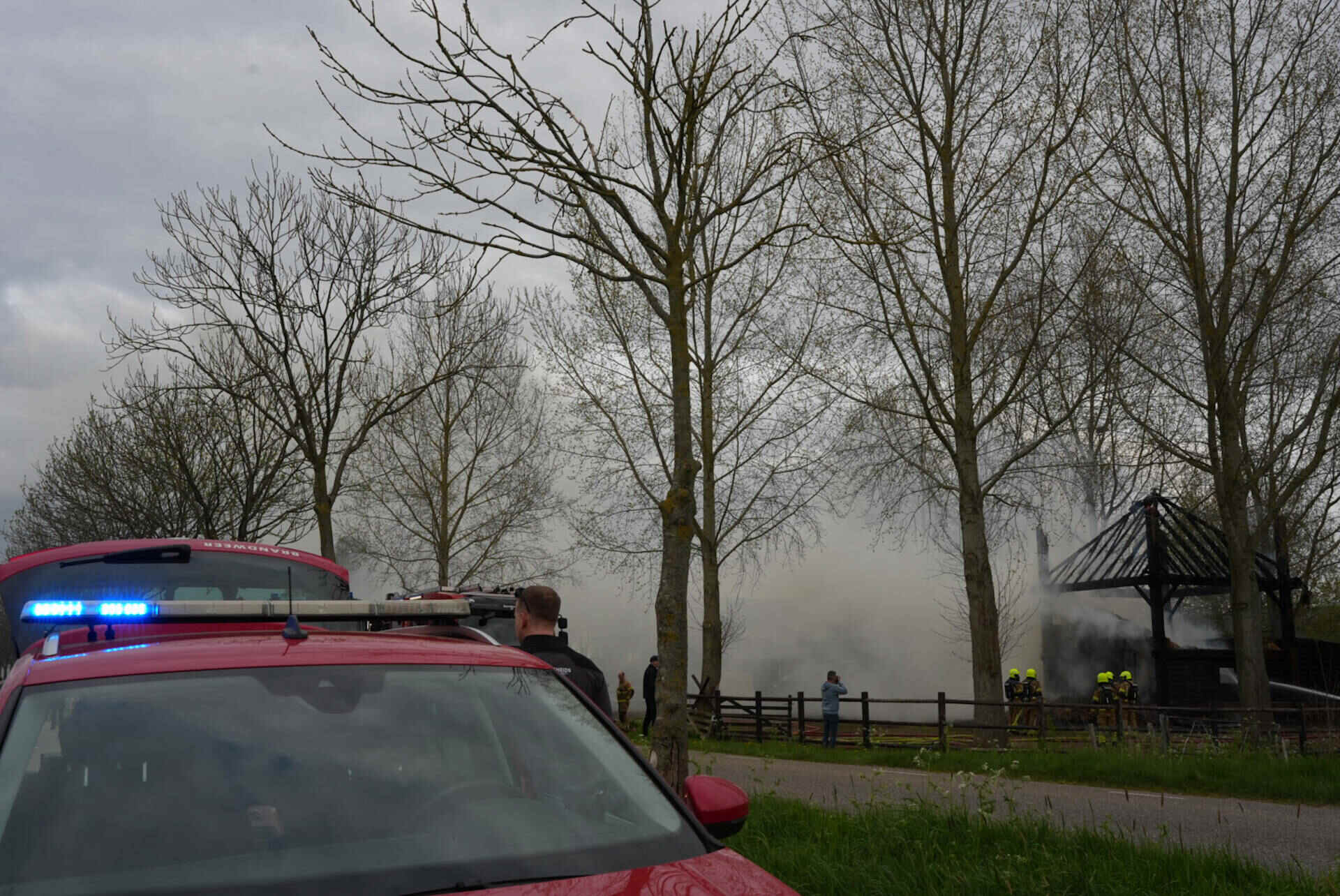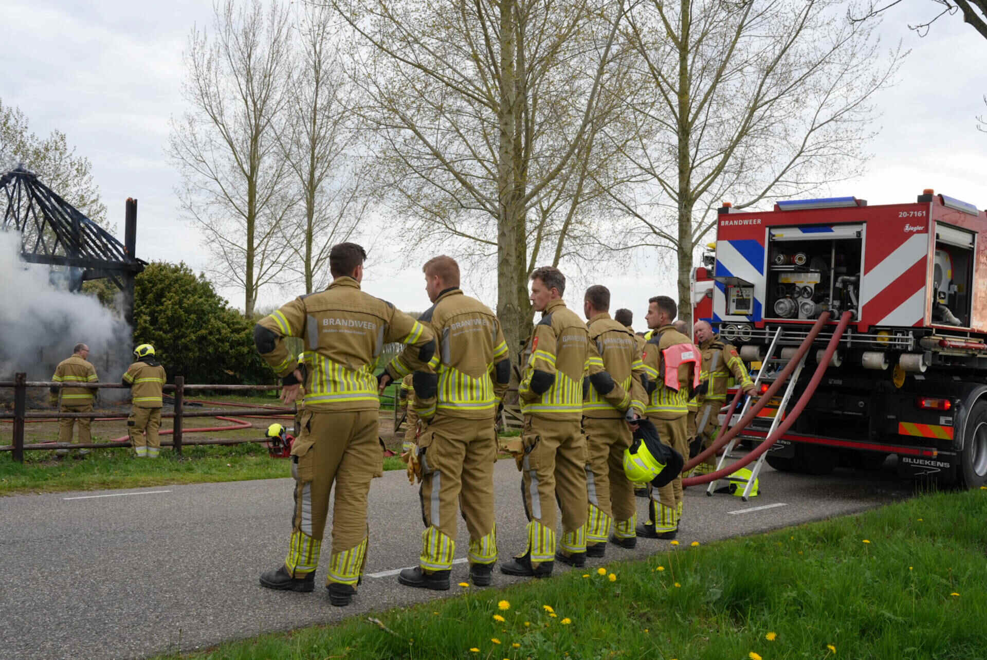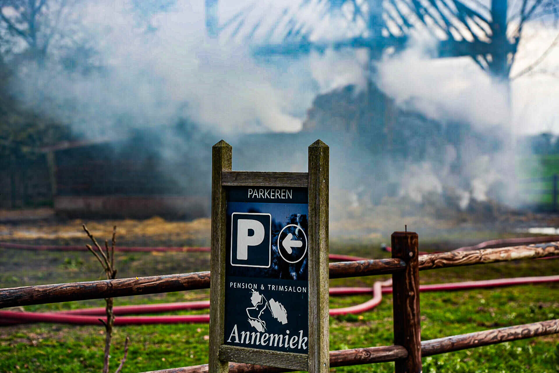 De brandweer had het vuur snel onder controle, maar kon niet voorkomen dat de hooischuur afbrandde. Er kwam veel rook van de smeulende hooiberg af, wat leidde tot de oproep dat omwonenden hun ramen en deuren moesten sluiten.
