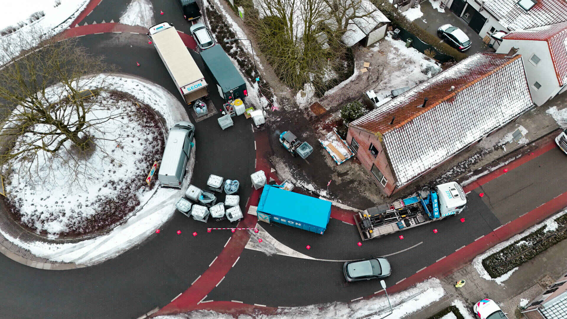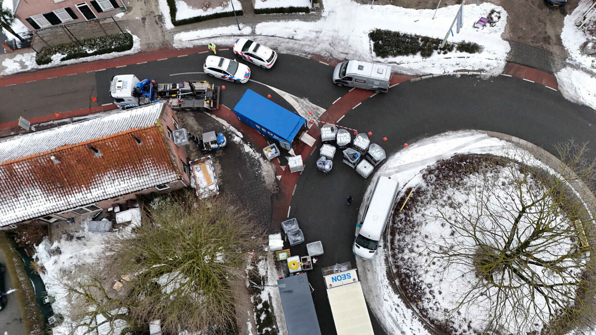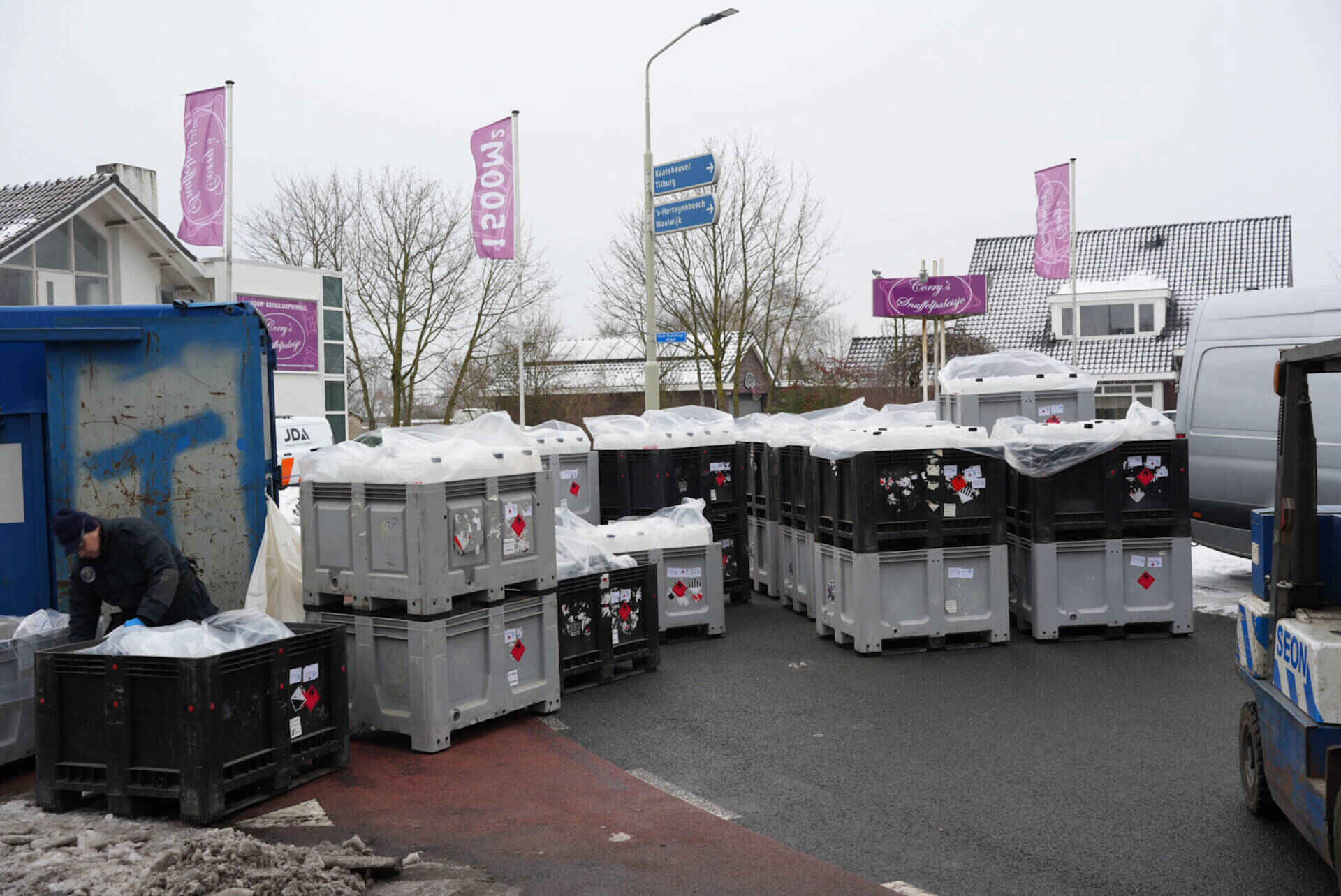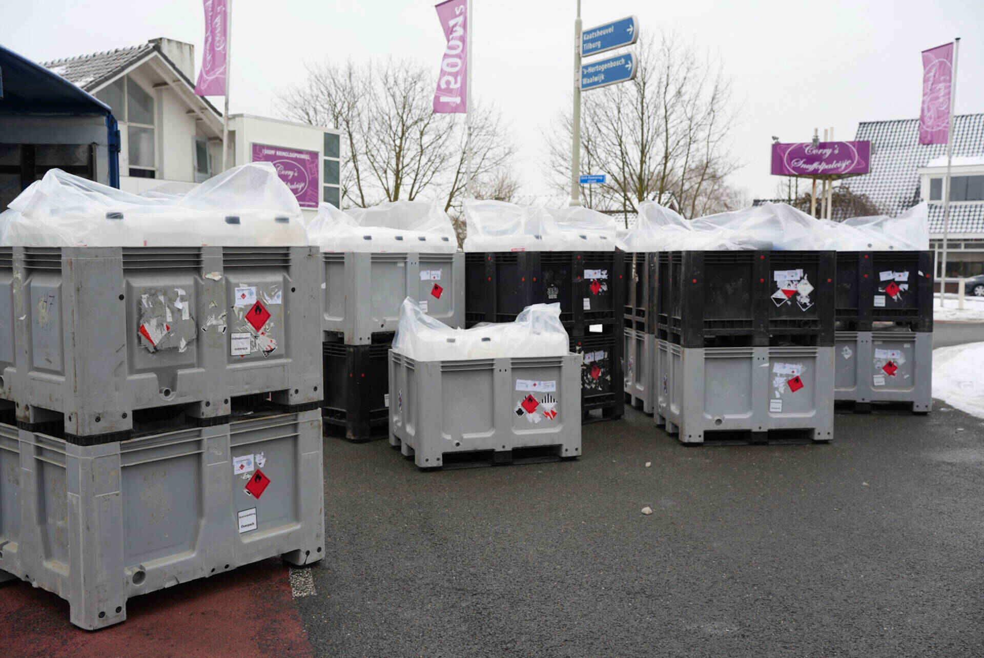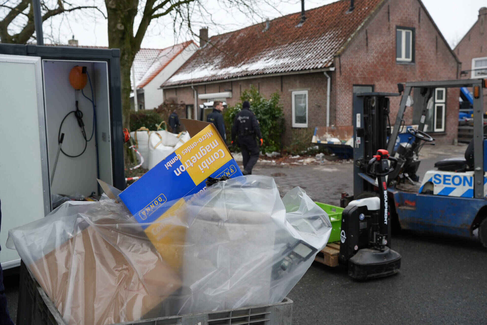 Voor de afvoer van alle aangetroffen materialen waren twee vrachtwagens nodig. Op zolder bevonden zich naar schatting zo’n 250 jerrycans met een inhoud van ongeveer 20 tot 25 liter, gevuld met chemicaliën.