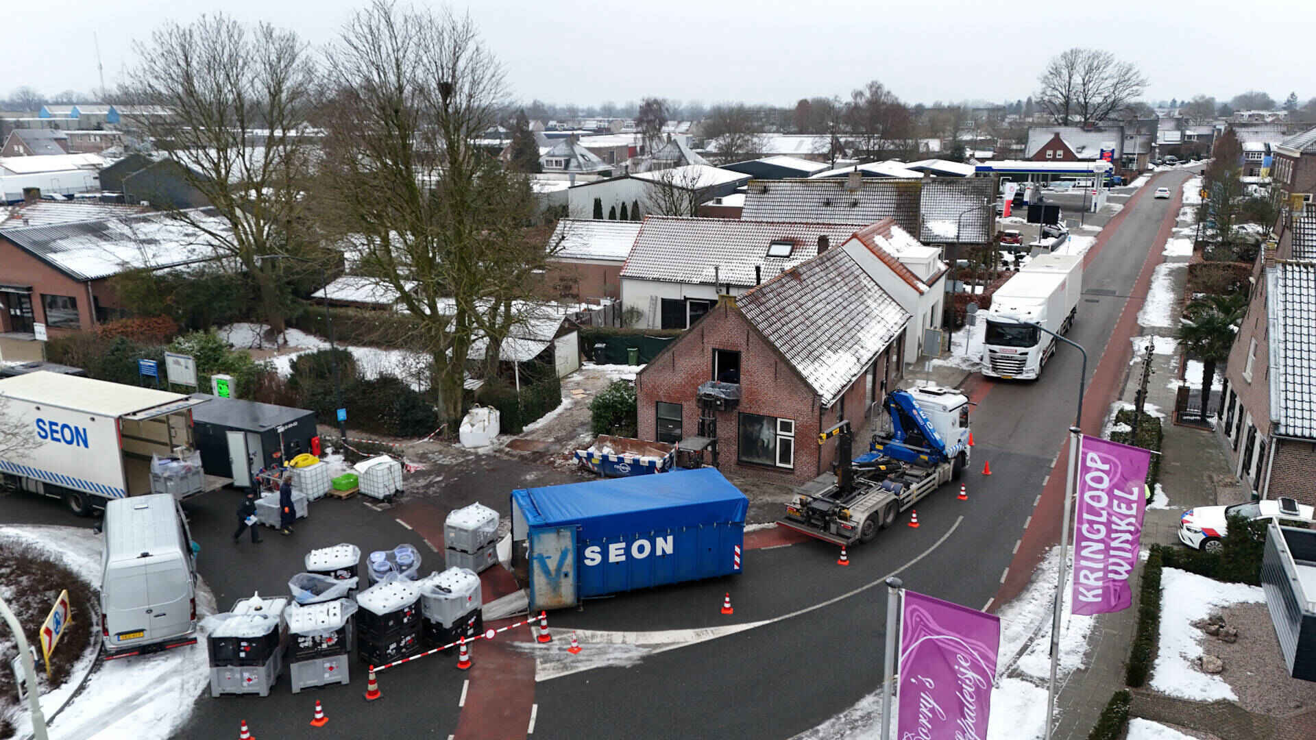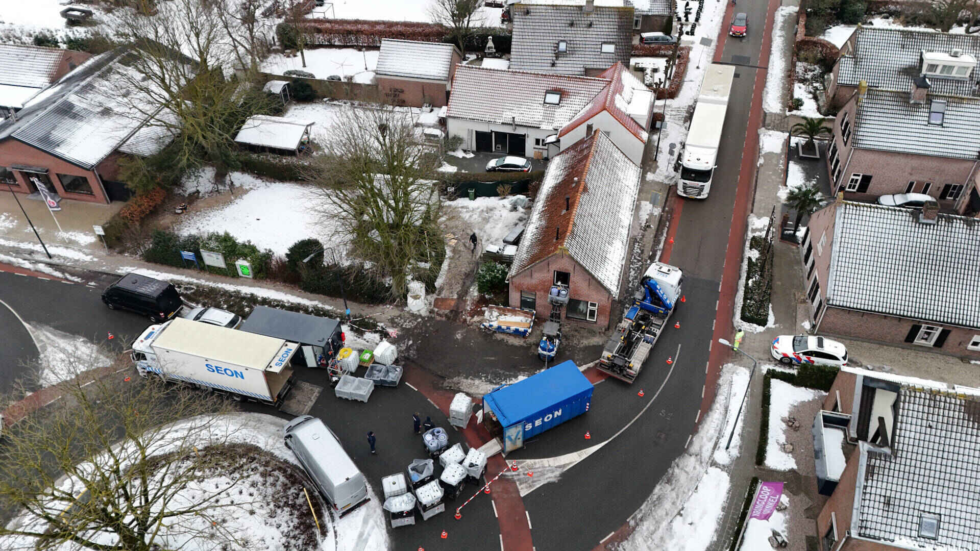 De gemeente heeft direct na de ontdekking ingegrepen en het pand vandaag gesloten en verzegeld. Zondagmiddag werden alle chemicaliën onder begeleiding afgevoerd. Naar verwachting kon de weg binnen een half uur weer worden vrijgegeven.
