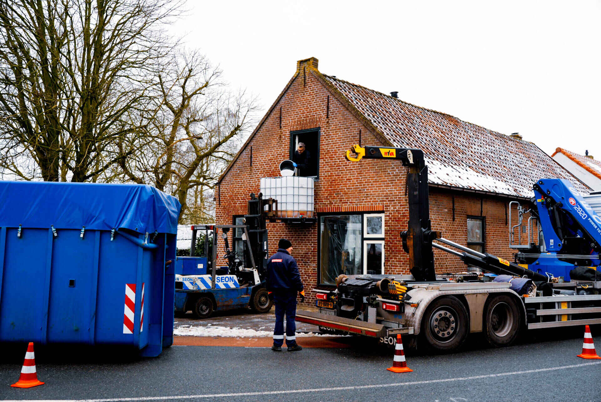 Zondag is de cocaïnewasserij volledig ontruimd. Het gespecialiseerde bedrijf SEON heeft het pand leeggehaald. Er waren twee vrachtwagens voor nodig: op zolder zouden naar schatting 250 jerrycans met inhoud van 20 tot 25 liter vol chemicaliën zijn gevonden.