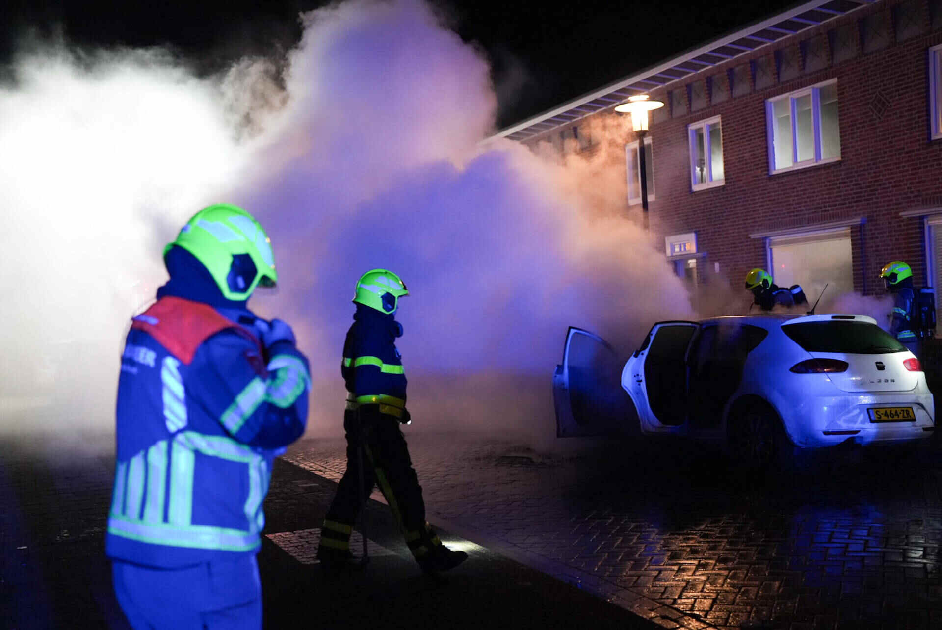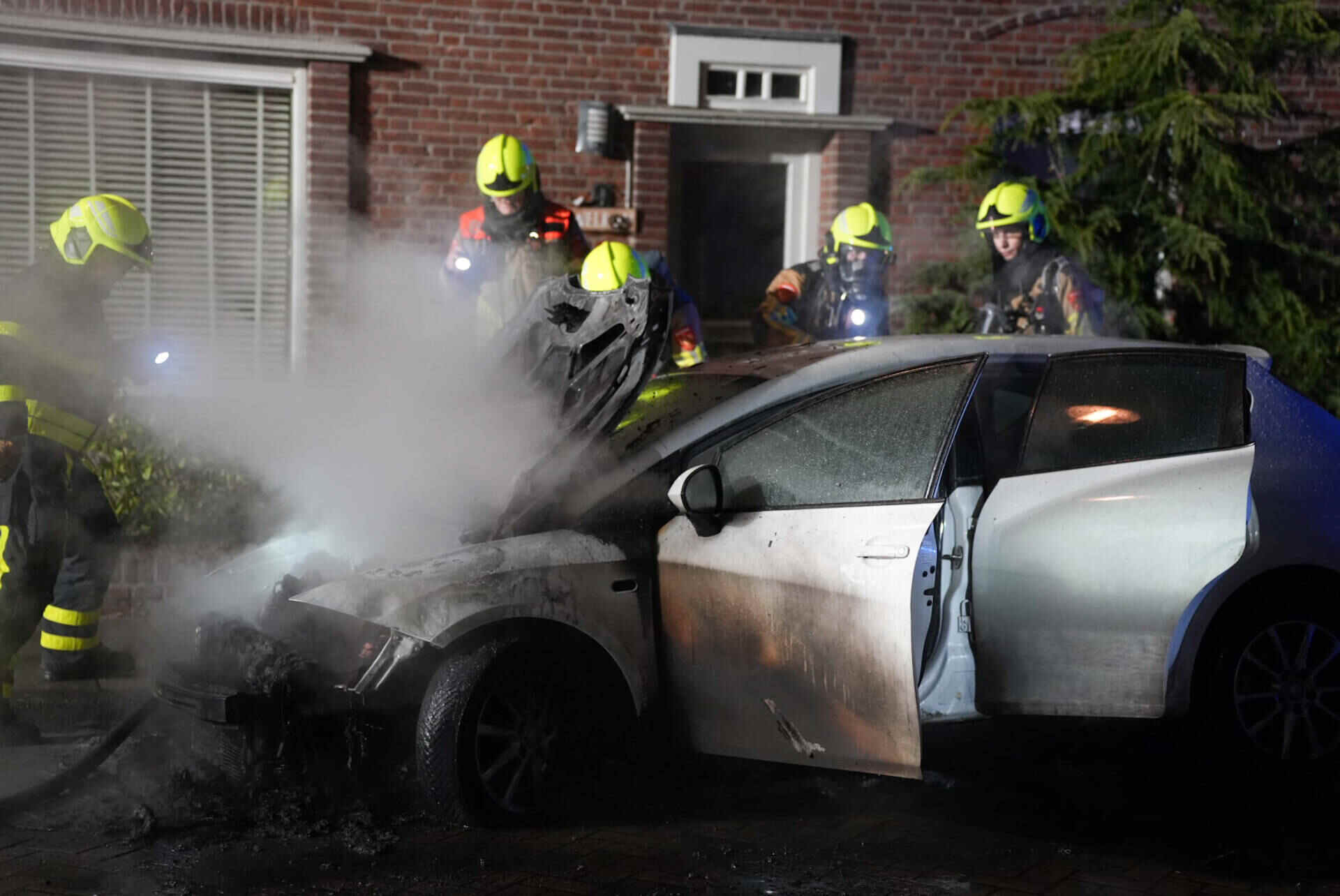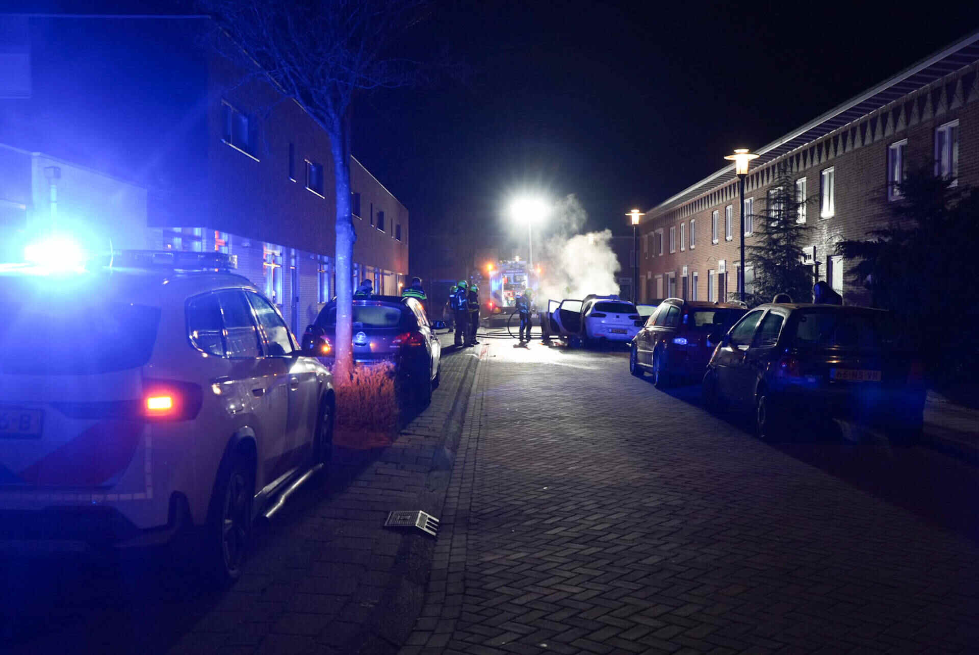 De melding kwam rond 03.30 uur binnen bij de hulpdiensten. De brandweer arriveerde met een tankautospuit en bij aankomst sloegen de vlammen al metershoog uit de voorkant van de auto. Ook kwam veel rook vrij. Het vuur was snel onder controle, maar de voorkant van het voertuig liep veel schade op.