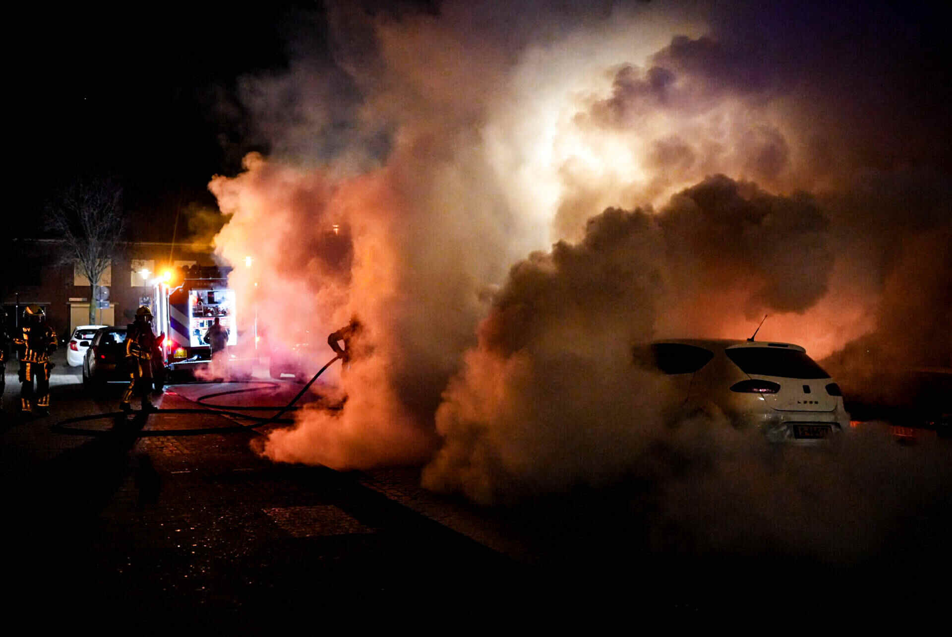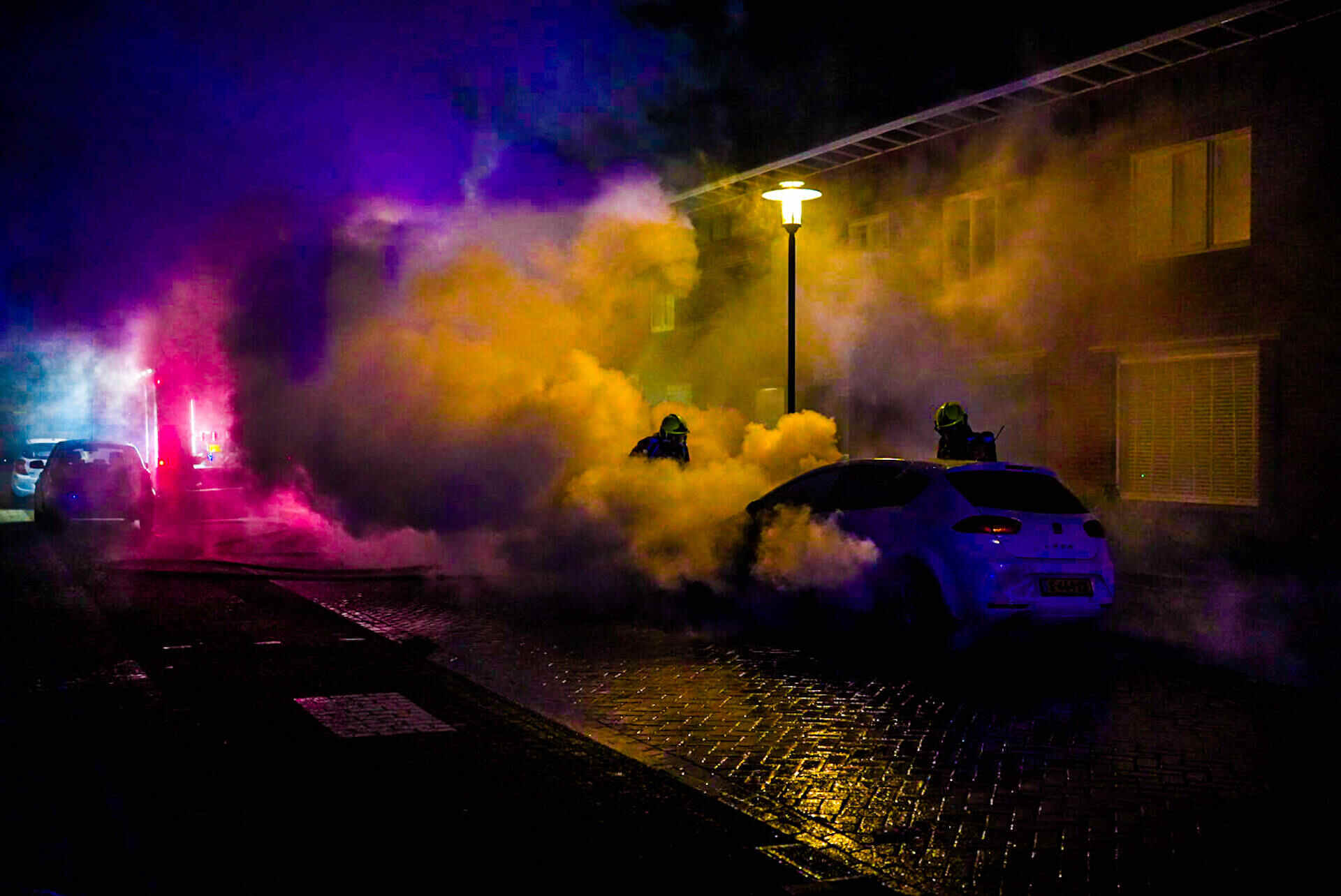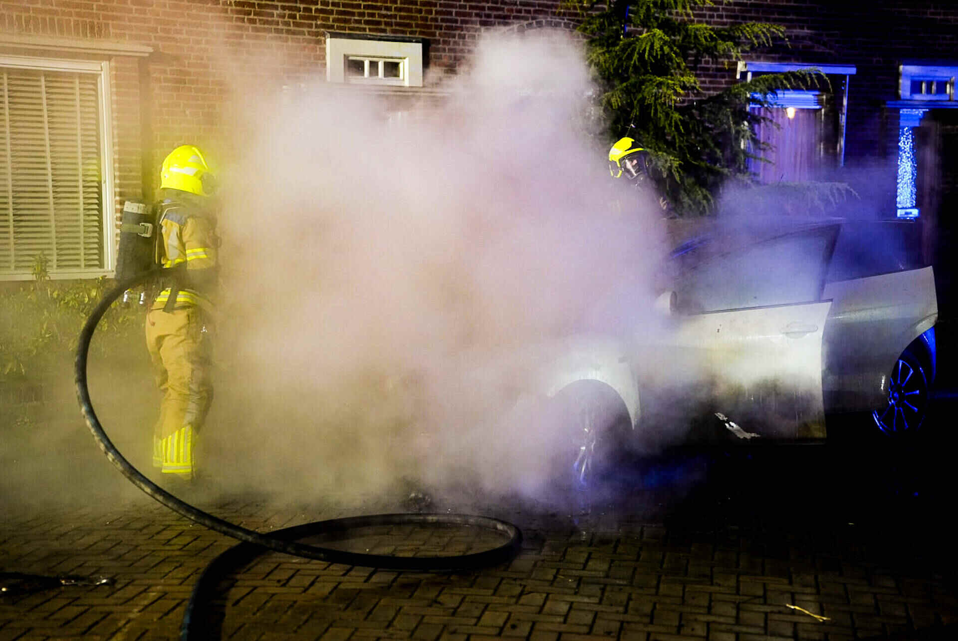 De melding kwam rond 03.30 uur binnen bij de hulpdiensten. De brandweer arriveerde met een tankautospuit en bij aankomst sloegen de vlammen al metershoog uit de voorkant van de auto. Ook kwam veel rook vrij. Het vuur was snel onder controle, maar de voorkant van het voertuig liep veel schade op.
