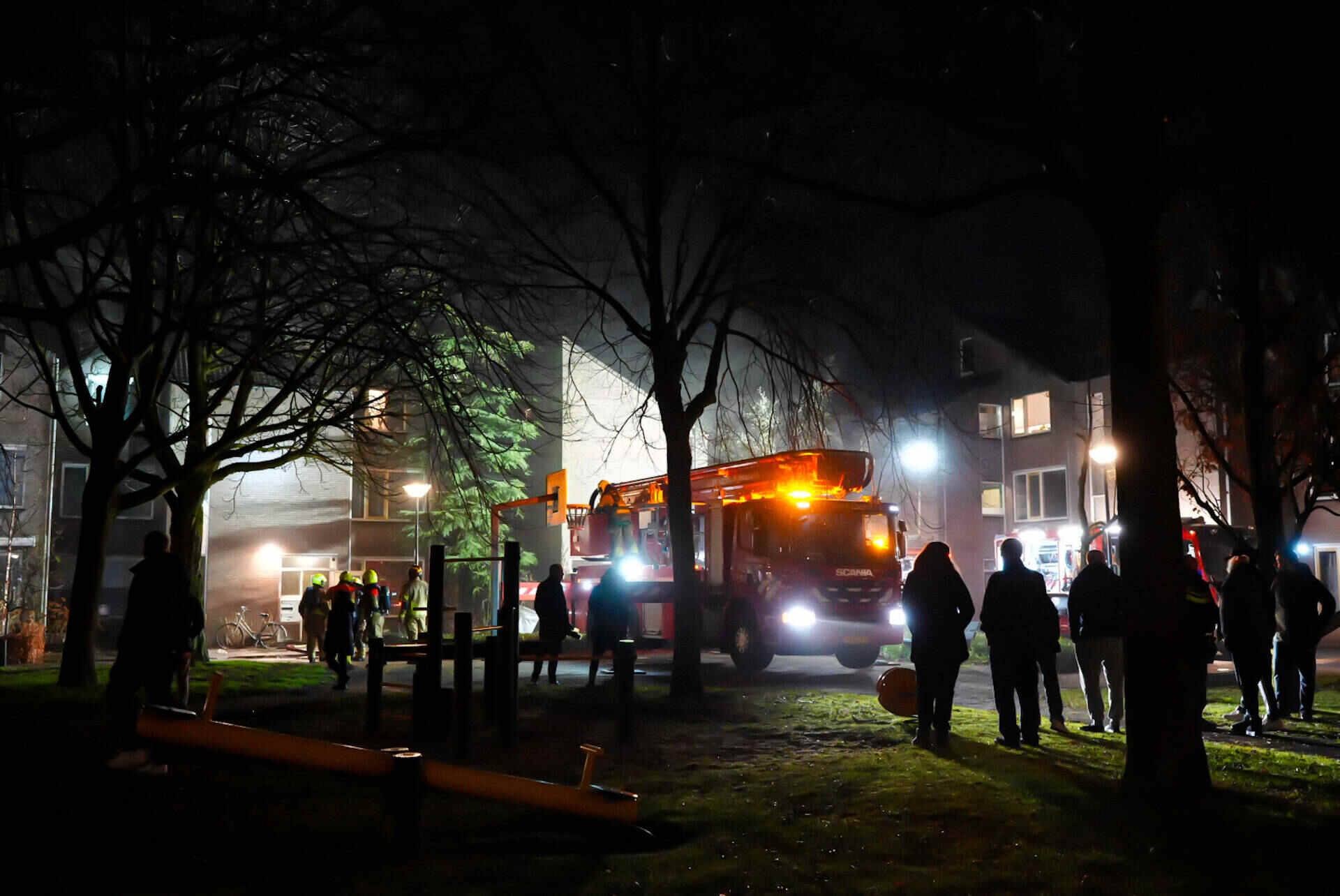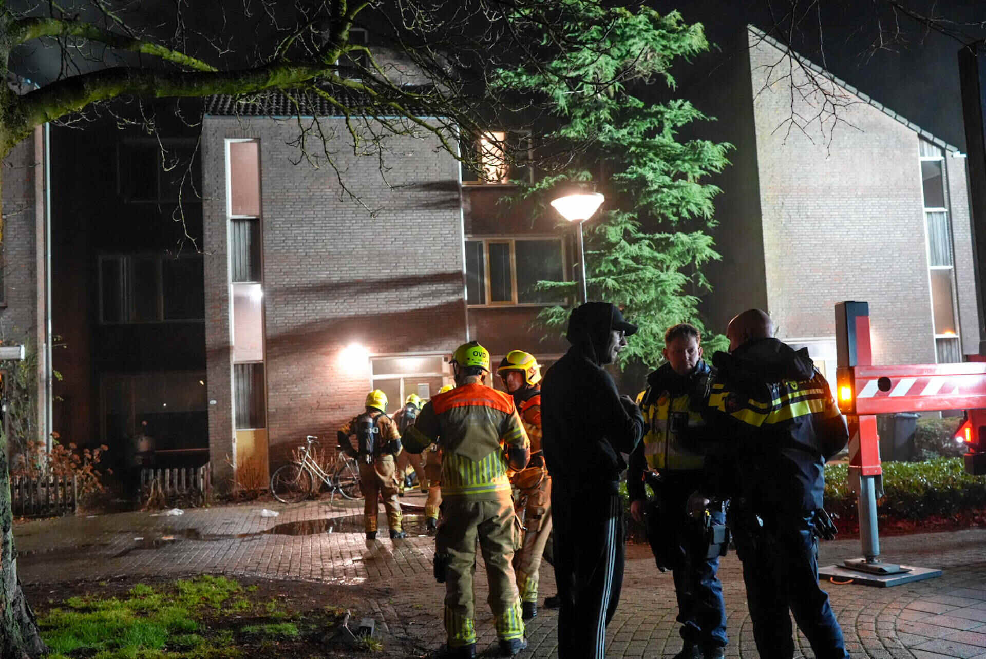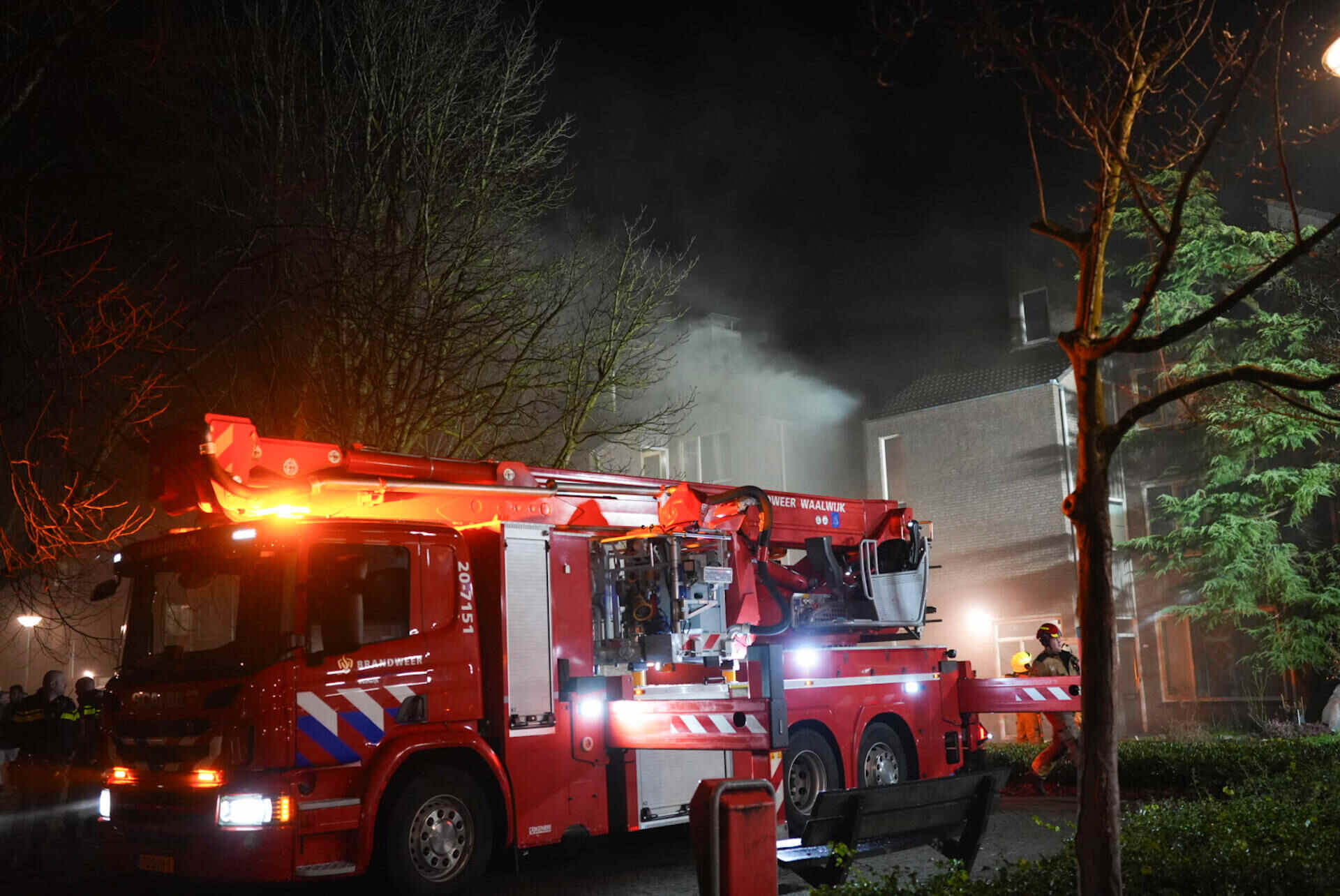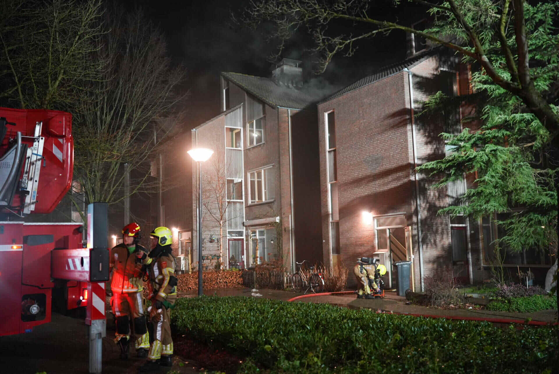 Rond het appartementencomplex hing in de nacht een flinke rookwolk. De brandweer kwam met meerdere voertuigen ter plaatse, waaronder een hoogwerker. Ook politie en ambulance waren aanwezig. De brandweer kreeg het vuur vlot onder controle, maar vanwege de aard van de brand werd opgeschaald naar ‘middelbrand’.