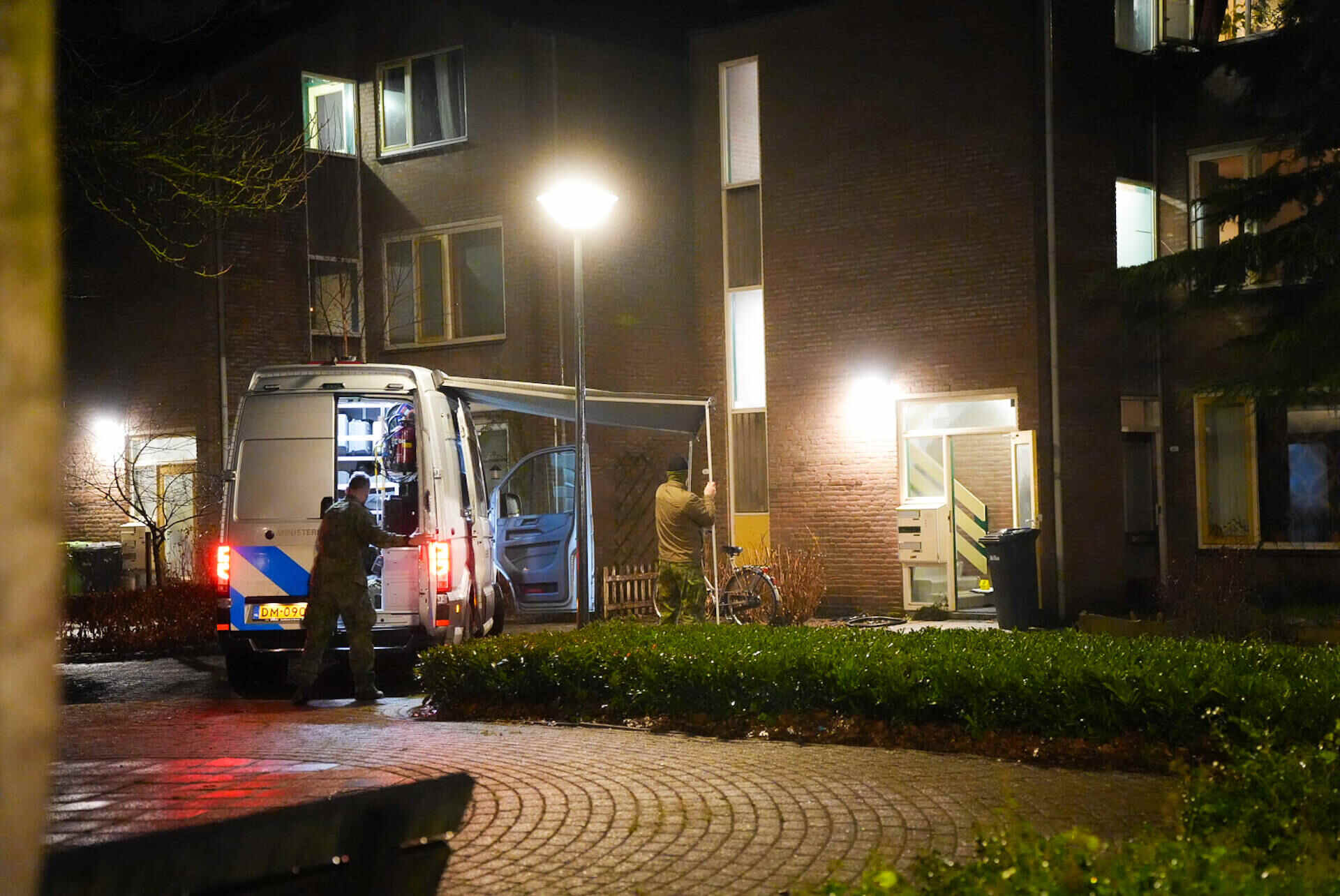 De twee mannelijke bewoners van het appartement zijn aangehouden en overgebracht naar een politiecellencomplex. Het pand is aangemerkt als plaats delict.