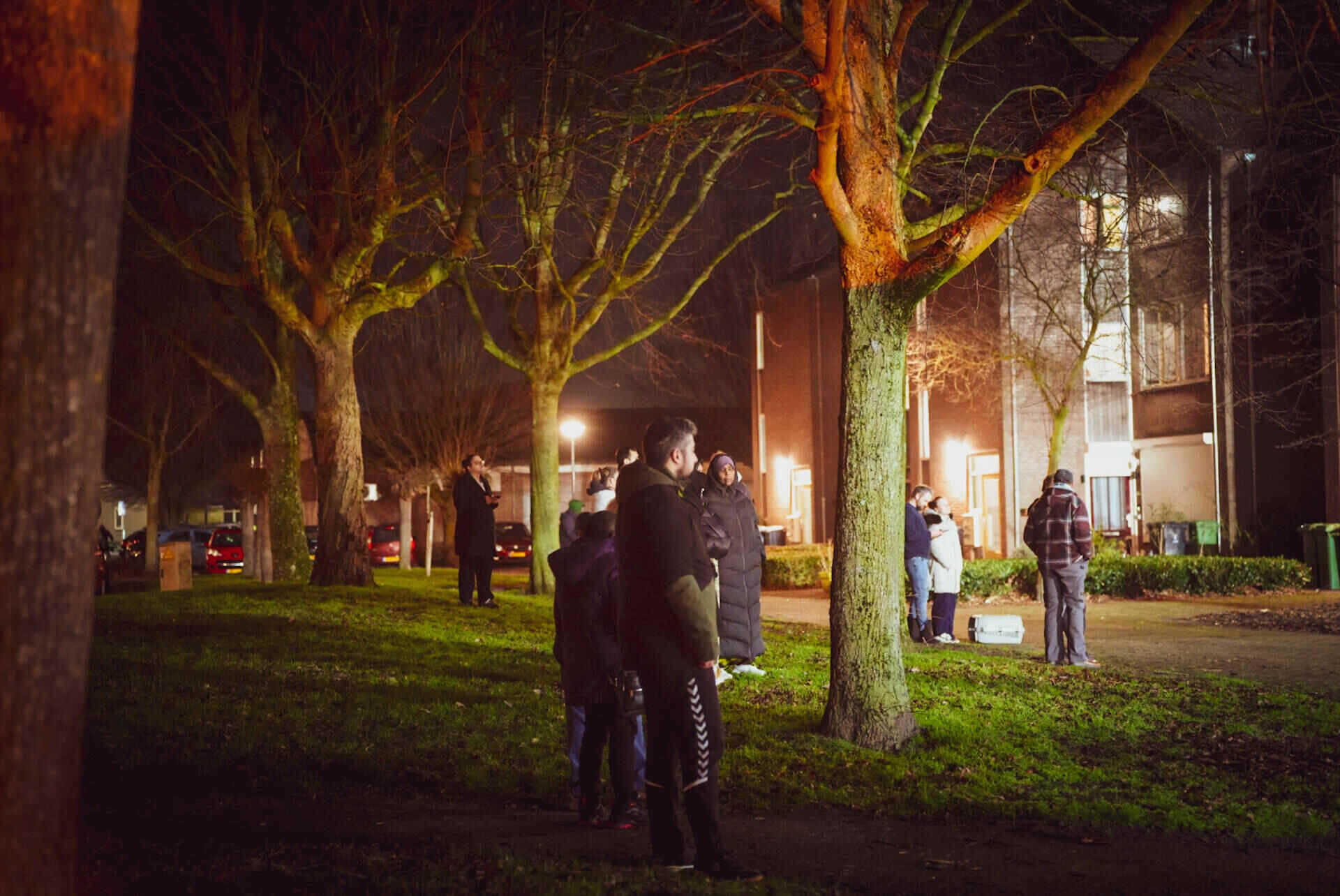 Onder de ontruimde bewoners is veel onrust. Jeroen Gouda staat bij het complex omdat hij wil weten wanneer zijn ouders weer naar binnen mogen. Zij belden hem rond 01.15 uur nadat ze wakker waren geworden van sirenes en zwaailichten. Rond 02.30 uur moesten zij hun woning verlaten.