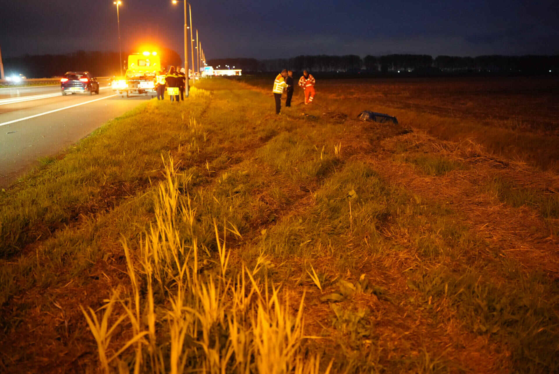 Het ongeval gebeurde op de A59 in de richting van Hooipolder. Door nog onbekende oorzaak botste de auto op een ander voertuig, vermoedelijk een busje, waarna de auto van de weg raakte en in de sloot belandde.