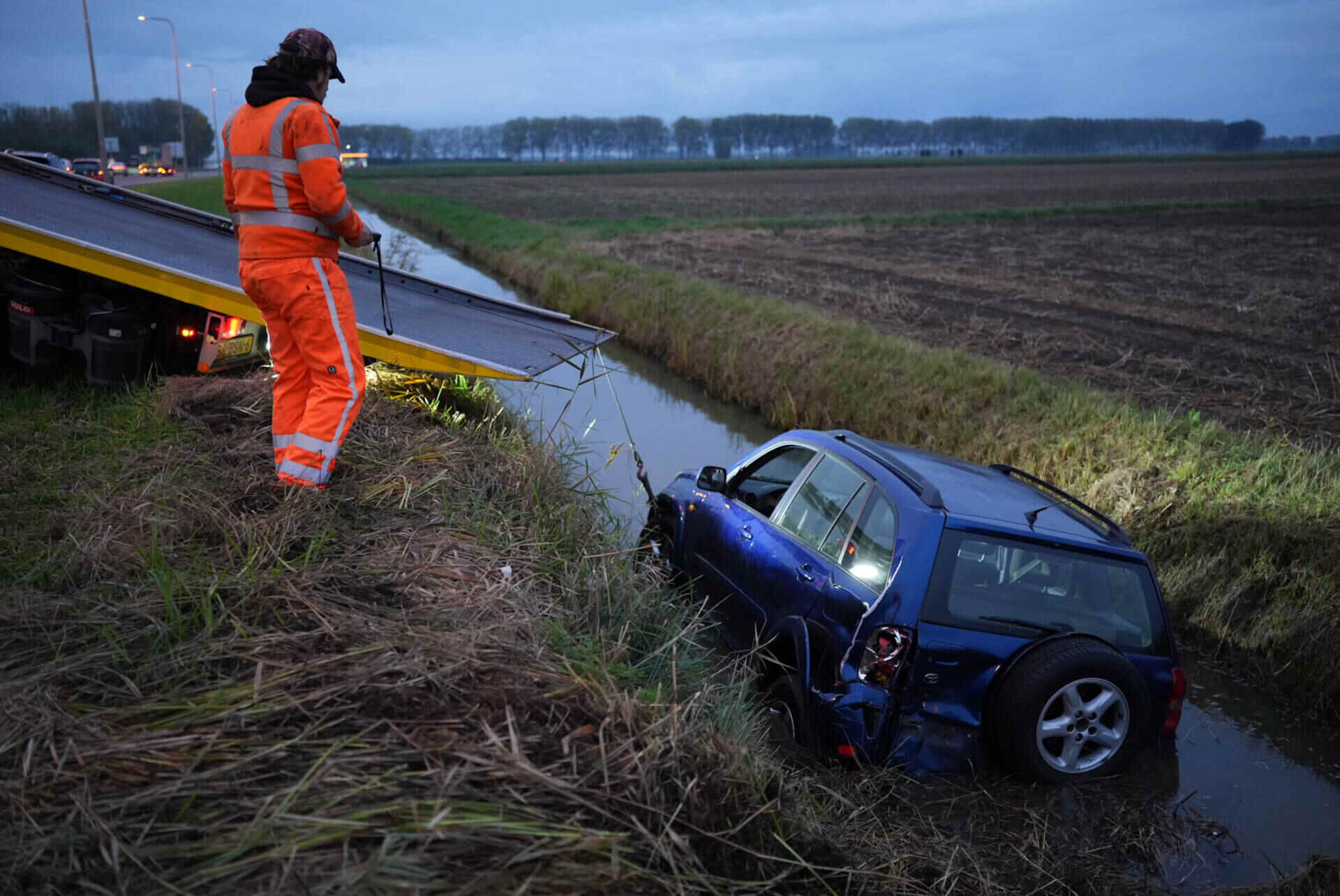 De bestuurder van de auto wist op eigen kracht uit het voertuig te komen en bleef ongedeerd. Zijn auto raakte echter zwaar beschadigd en is door een bergingsbedrijf uit de sloot gehaald.