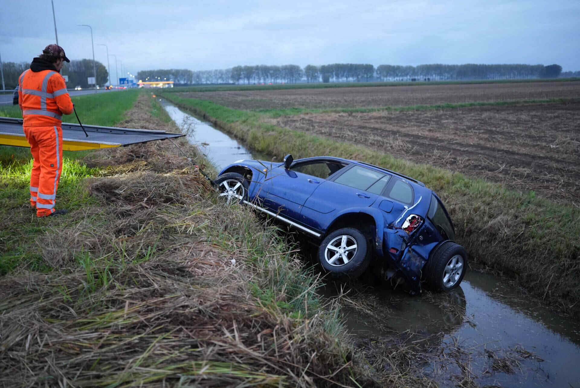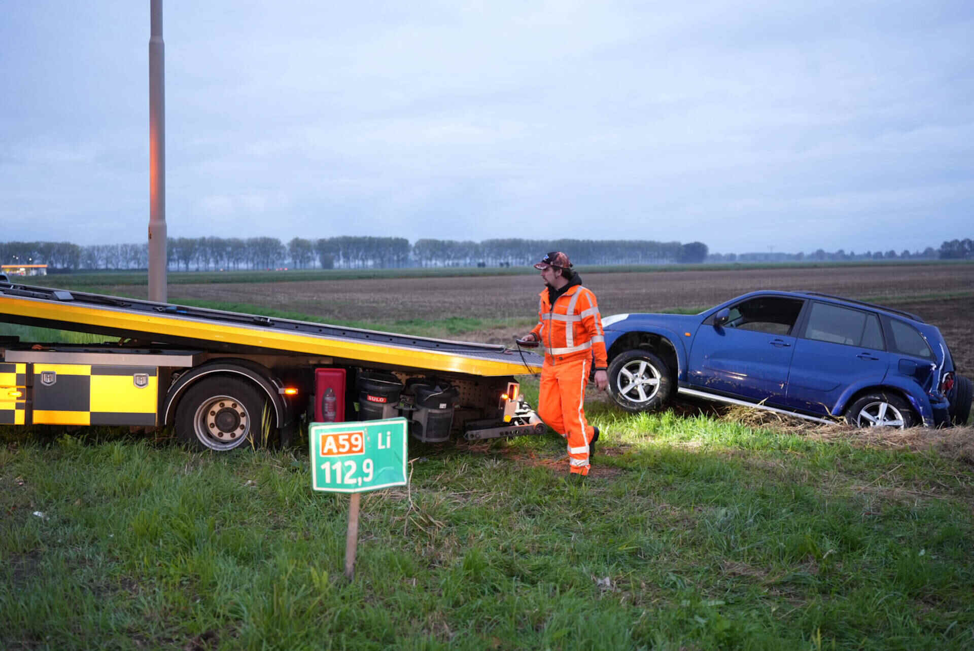 Auto belandt in sloot na aanrijding op A59 bij Sprang-Capelle, andere bestuurder rijdt door
