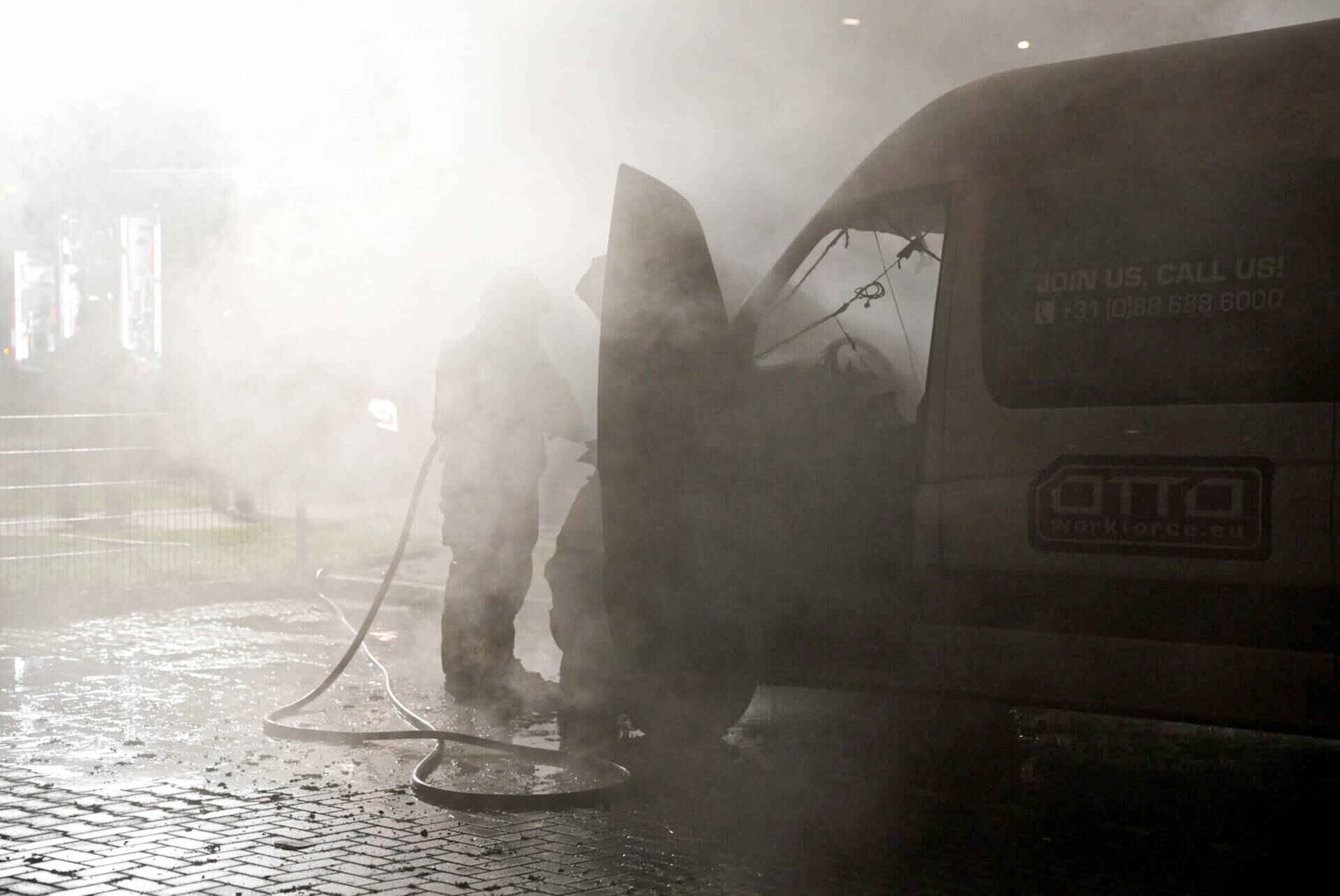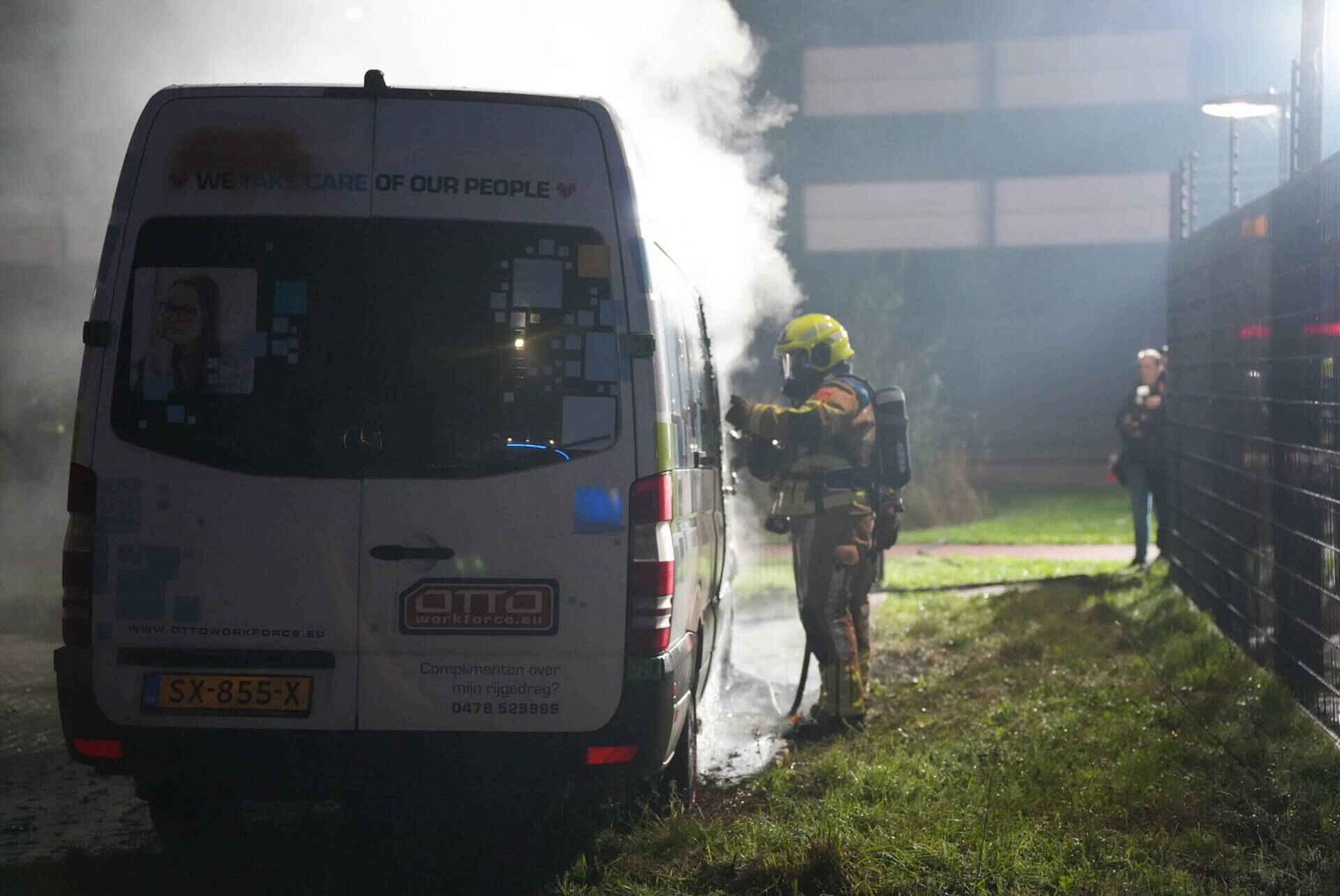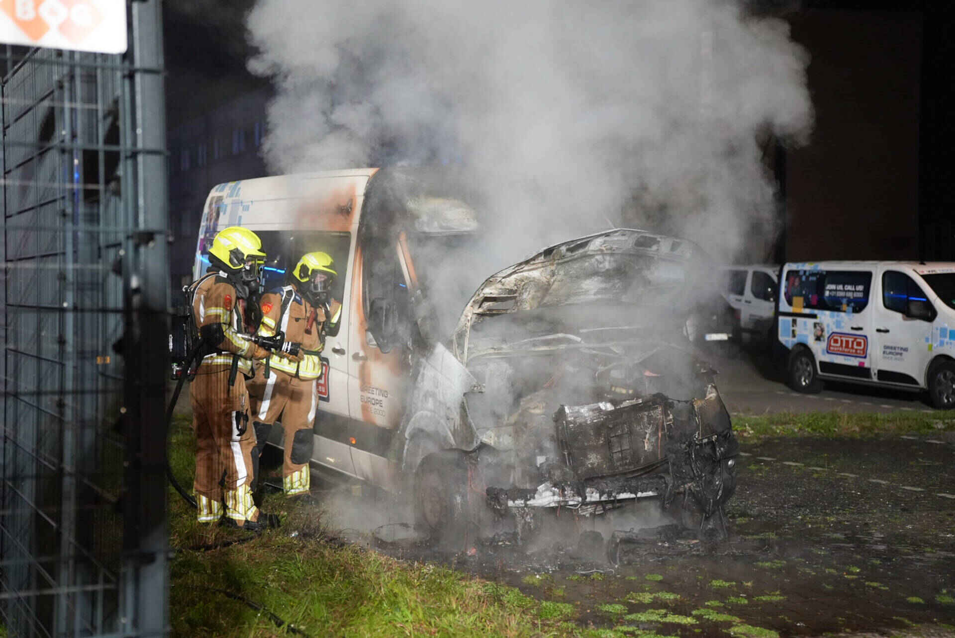 Het busje brandde volledig uit en kan als verloren worden beschouwd. Het werd opgehaald door een bergingsbedrijf.