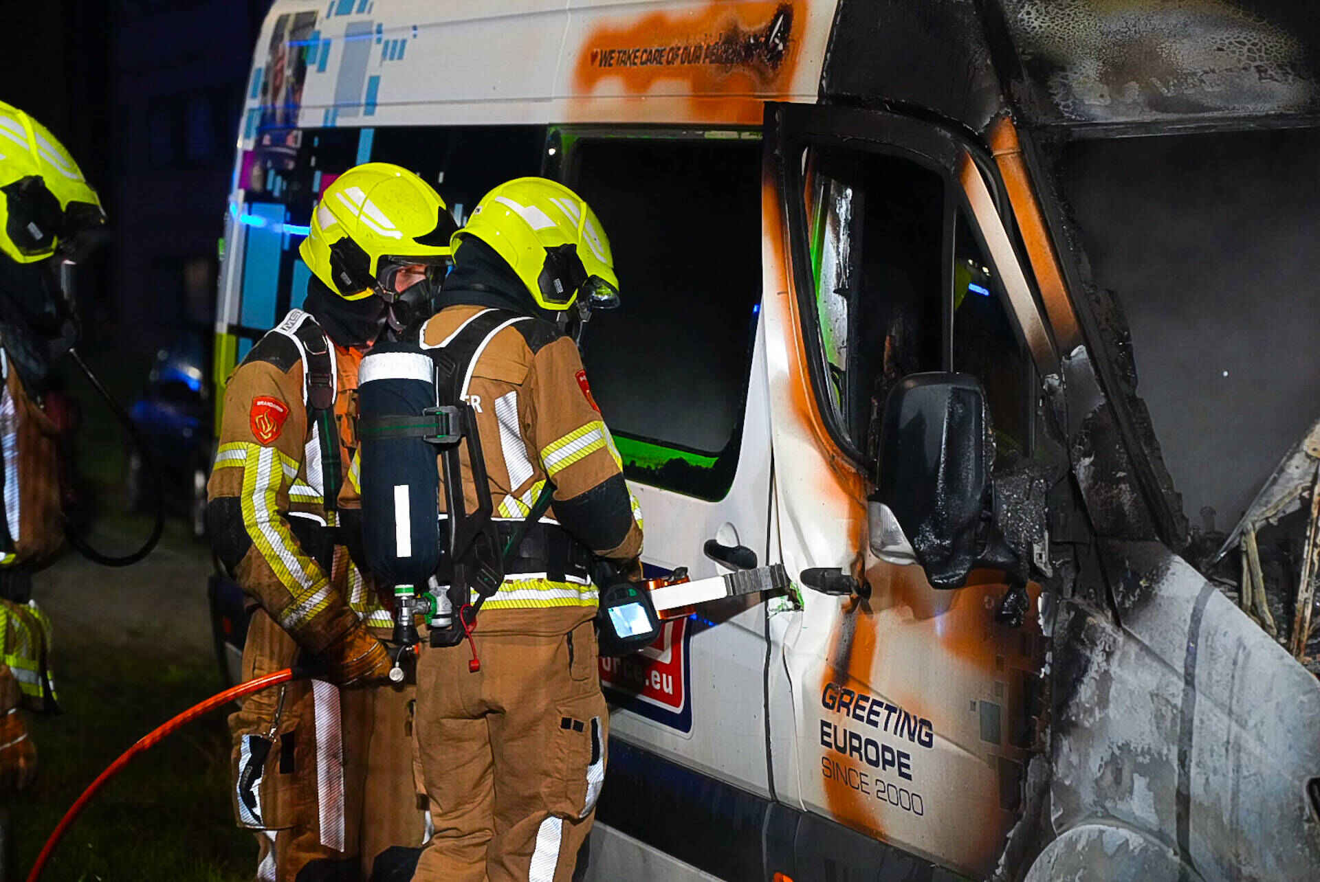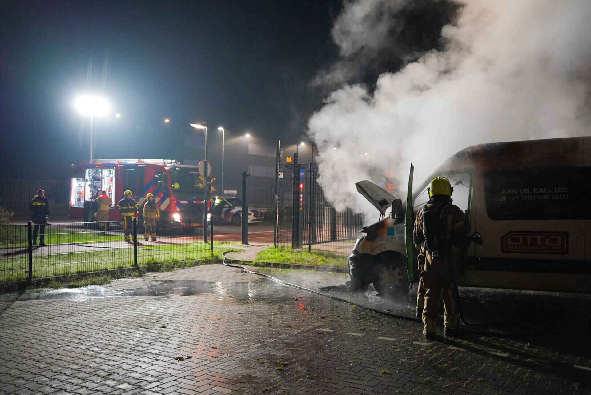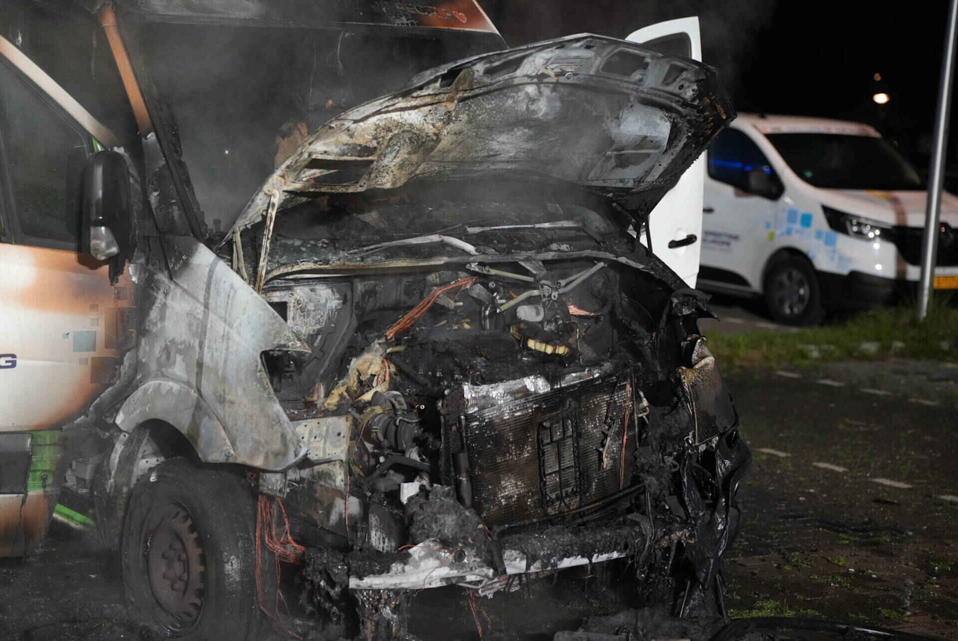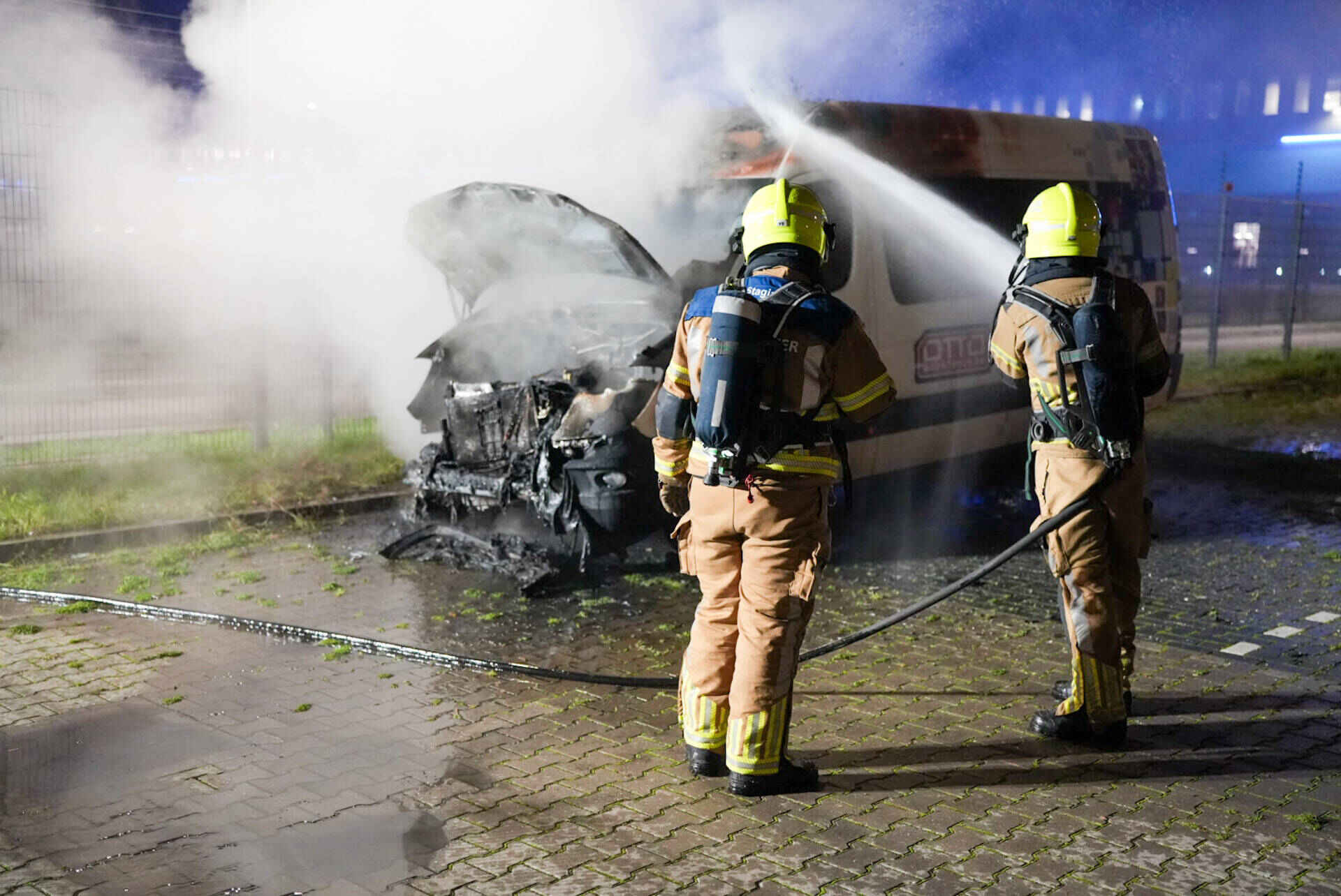Het busje brandde volledig uit en kan als verloren worden beschouwd. Het werd opgehaald door een bergingsbedrijf.