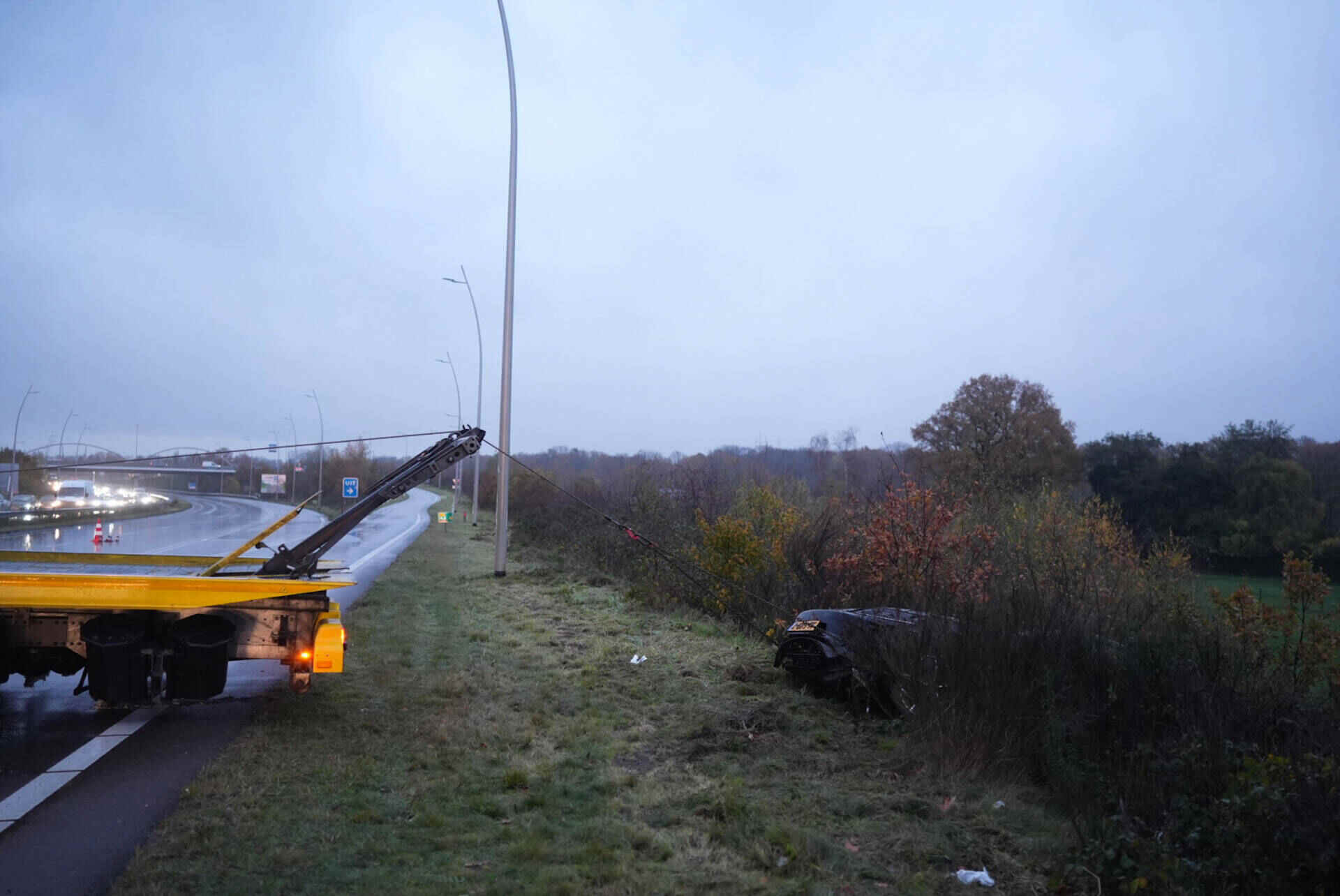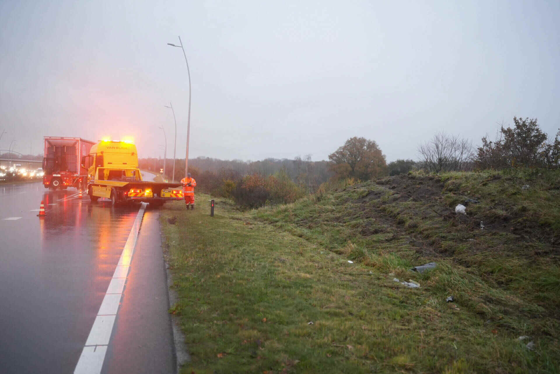 Al bij al zorgde de situatie voor lange files in beide richtingen. Inmiddels kan iedereen weer doorrijden. De geraakte lantaarnpaal moet nog worden opgehaald.