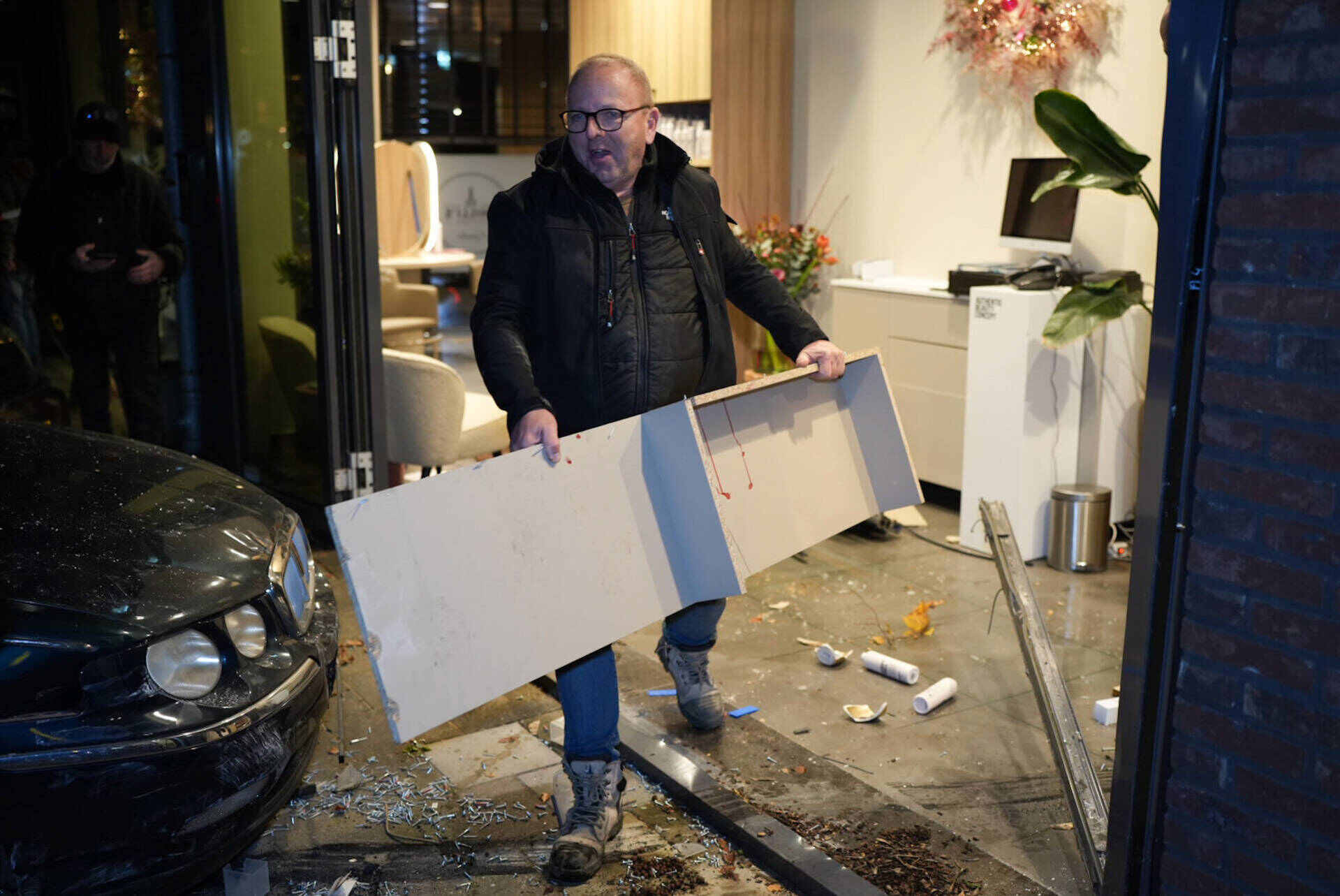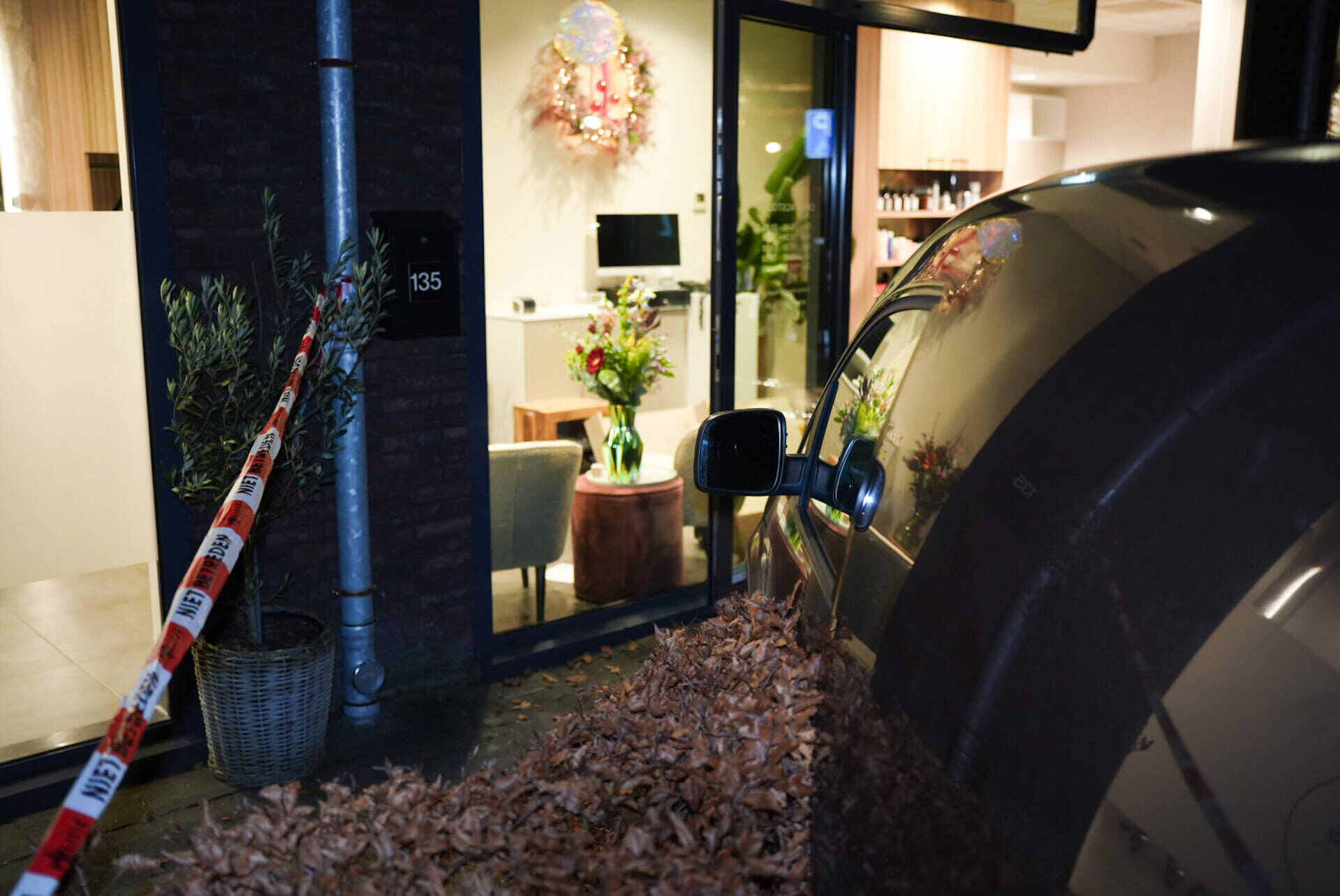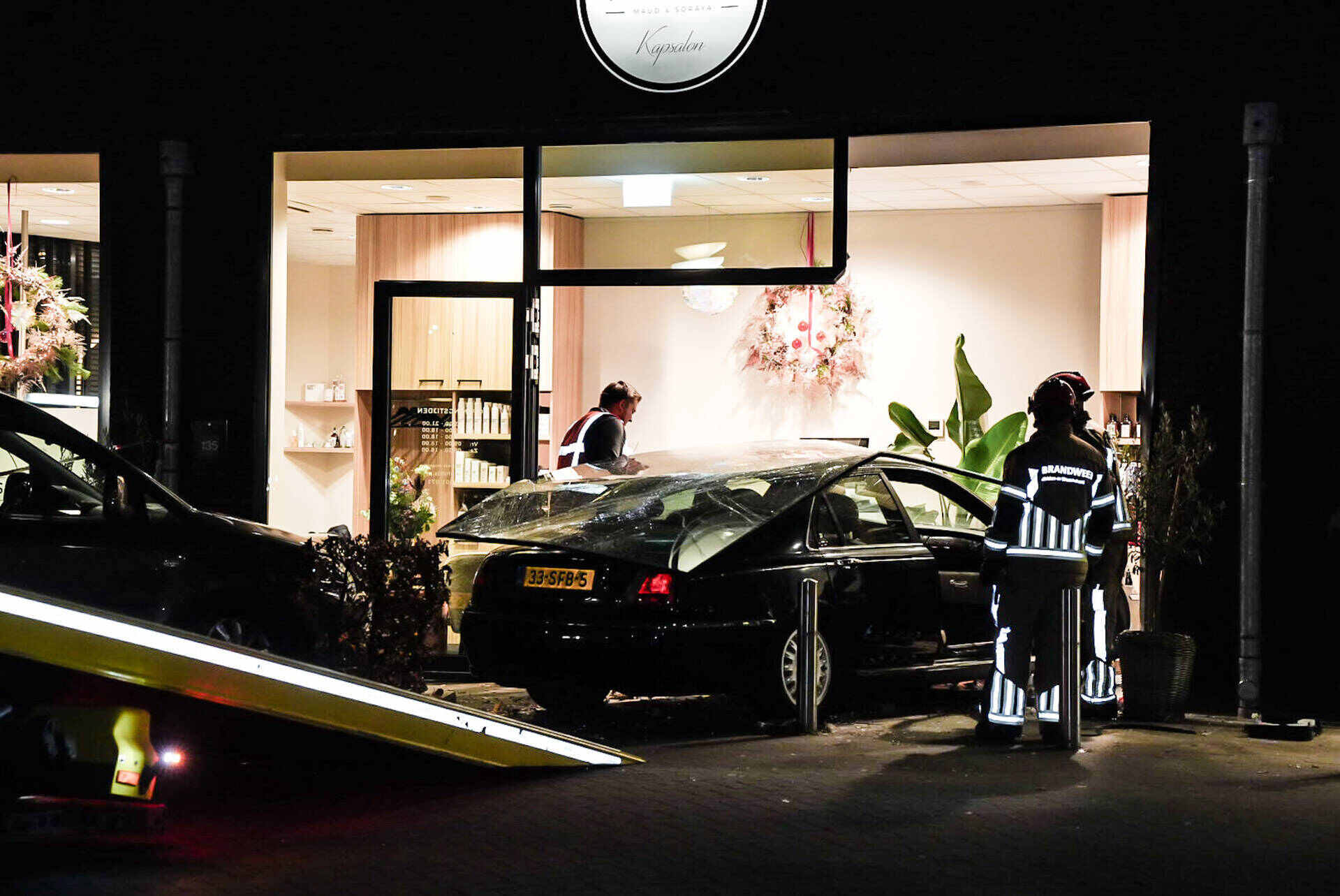 Auto rijdt dwars door glazen pui van kapsalon in Woudrichem, slechts één dag na eind van verbouwing