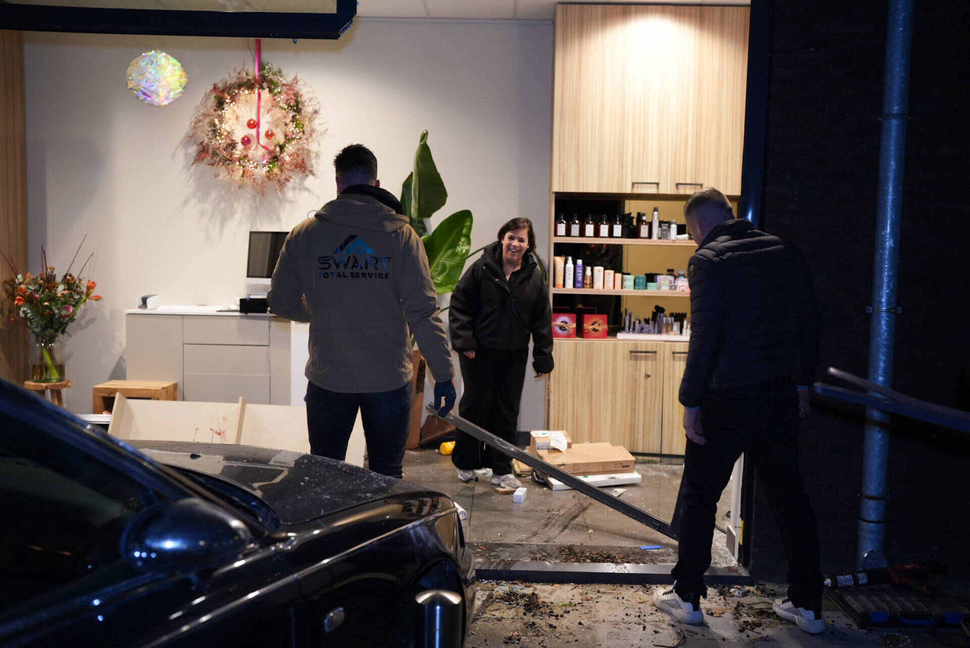 Voor de eigenaar een heel vervelend detail: de kapsalon was net een dag weer geopend na een grote verbouwing. De bestuurder van de auto raakte lichtgewond, in het gebouw kwam iedereen met de schrik vrij.